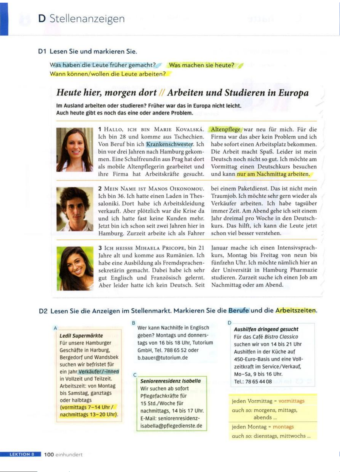 Ko m m u nikatio n, Lern ziele 174 Zwisch en d urch mal . . 176 D E W o r t f e l d e r G r a m m a t ik Ste lle n a n z e ig e n • Berufe