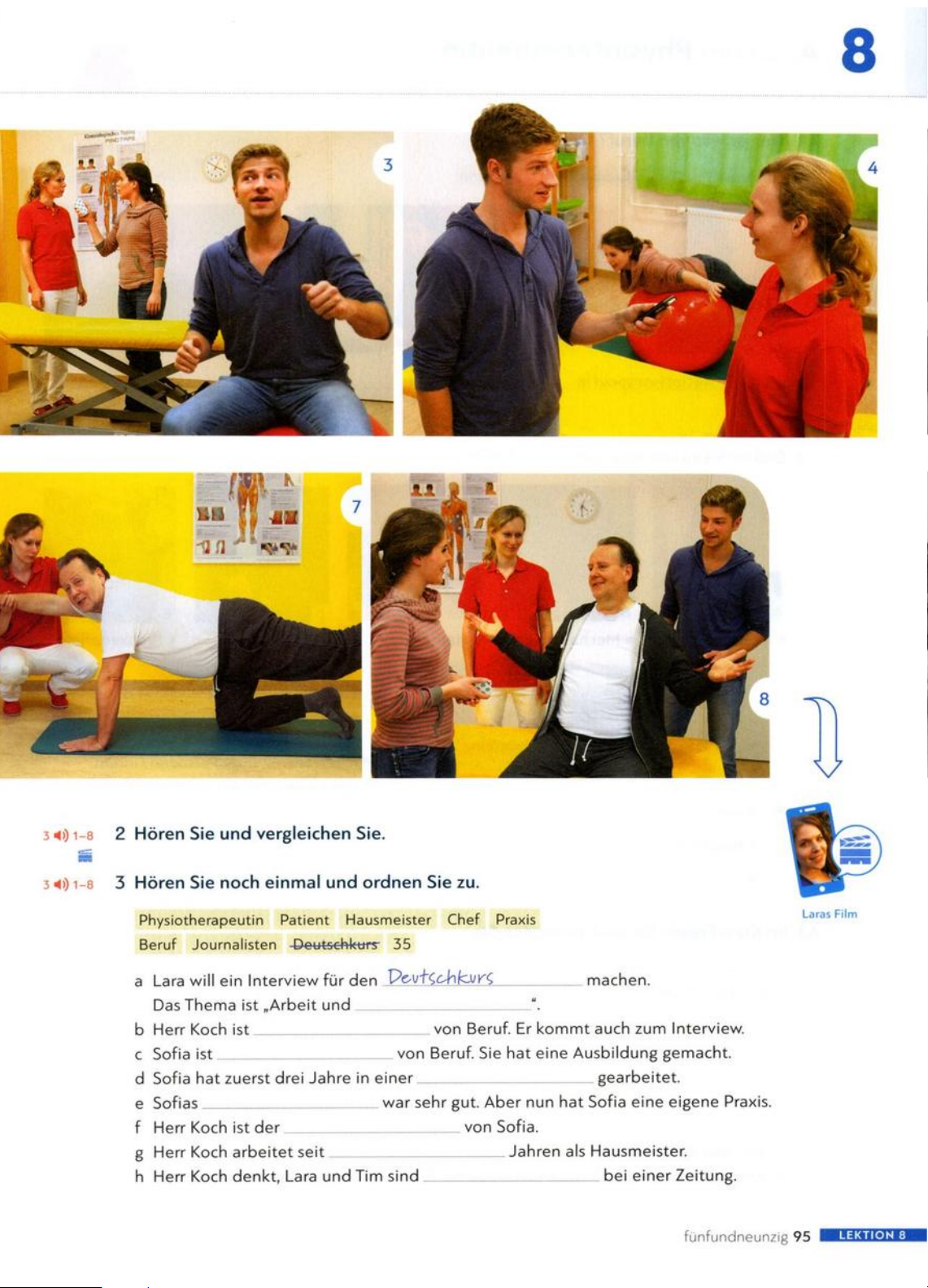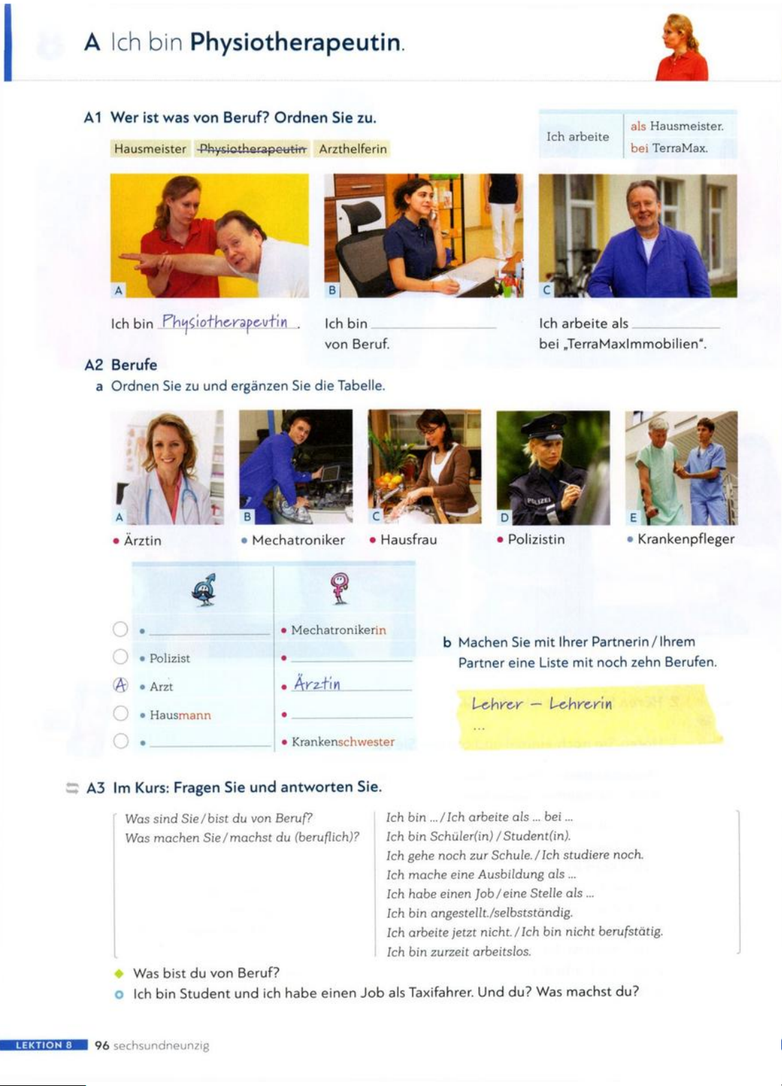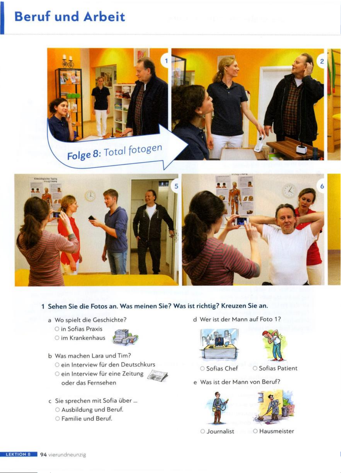 In h altsverze ich nis K u rsb u ch B C B e r u f u n d A r b e i t 94 Ich bin Ph ysio W ann h ast du die Ich h a tte ja noch th era p e u tin. Folg e 8: To tal fo to g e n A usb ild u n g g e m ach t? kein e B eru fs • Berufe b e n e n n e n • priva t e und b eru f erfahru n g. und erfrag en liche Inform atio ne n • von Ereig nissen • ü b er die b eruflich e ü b er V erg an g e nh eit und A ktivitä te n in Gra m m atik, Situ atio n sprech en und G e g e nw art d er Verg ang enheit