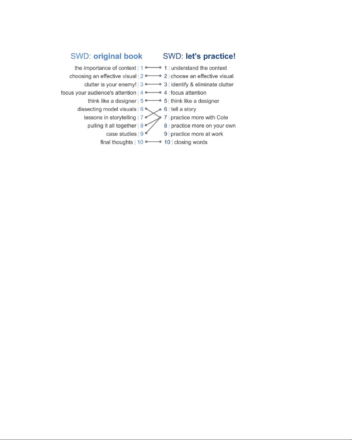 for applying the entire storytelling with data process. Chapter 7 (“practice more