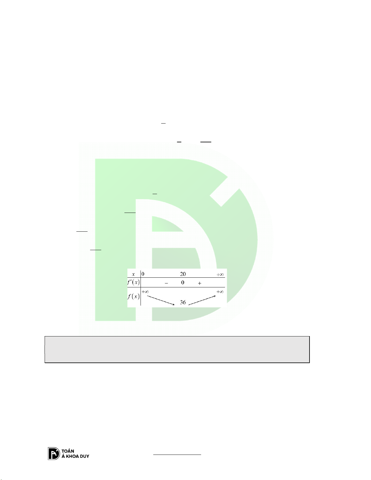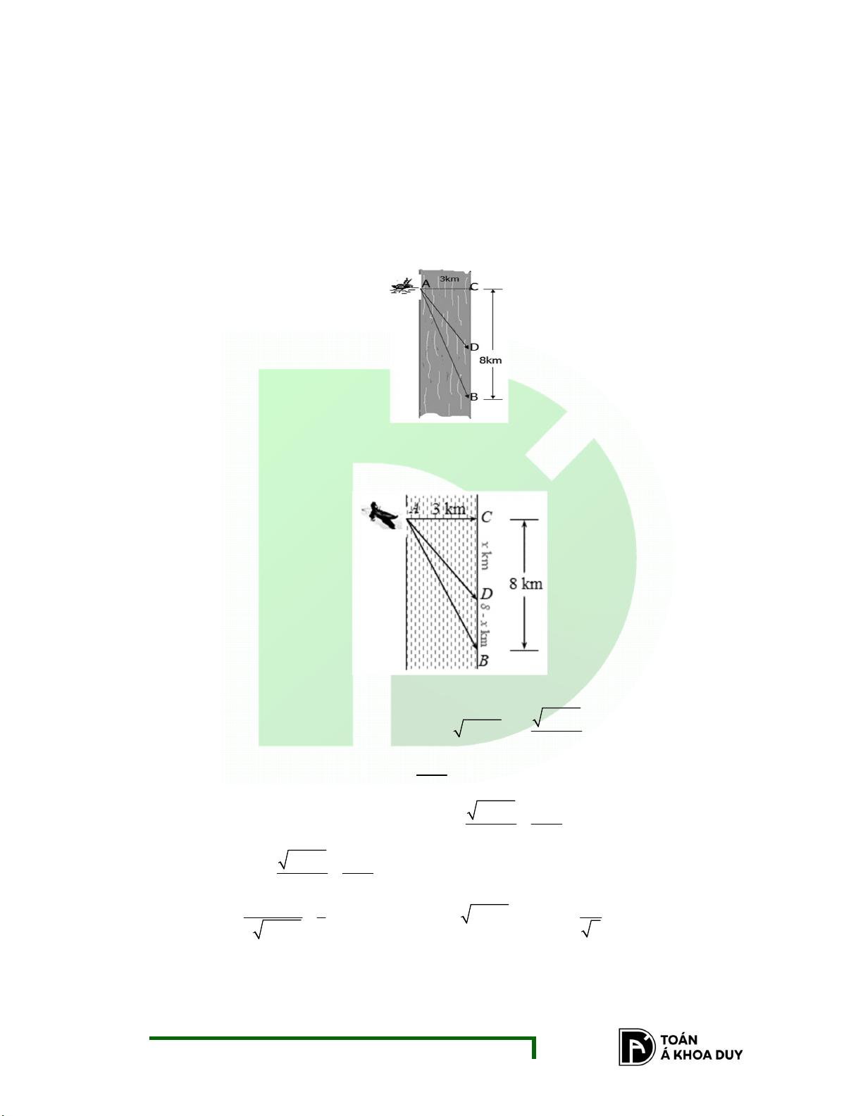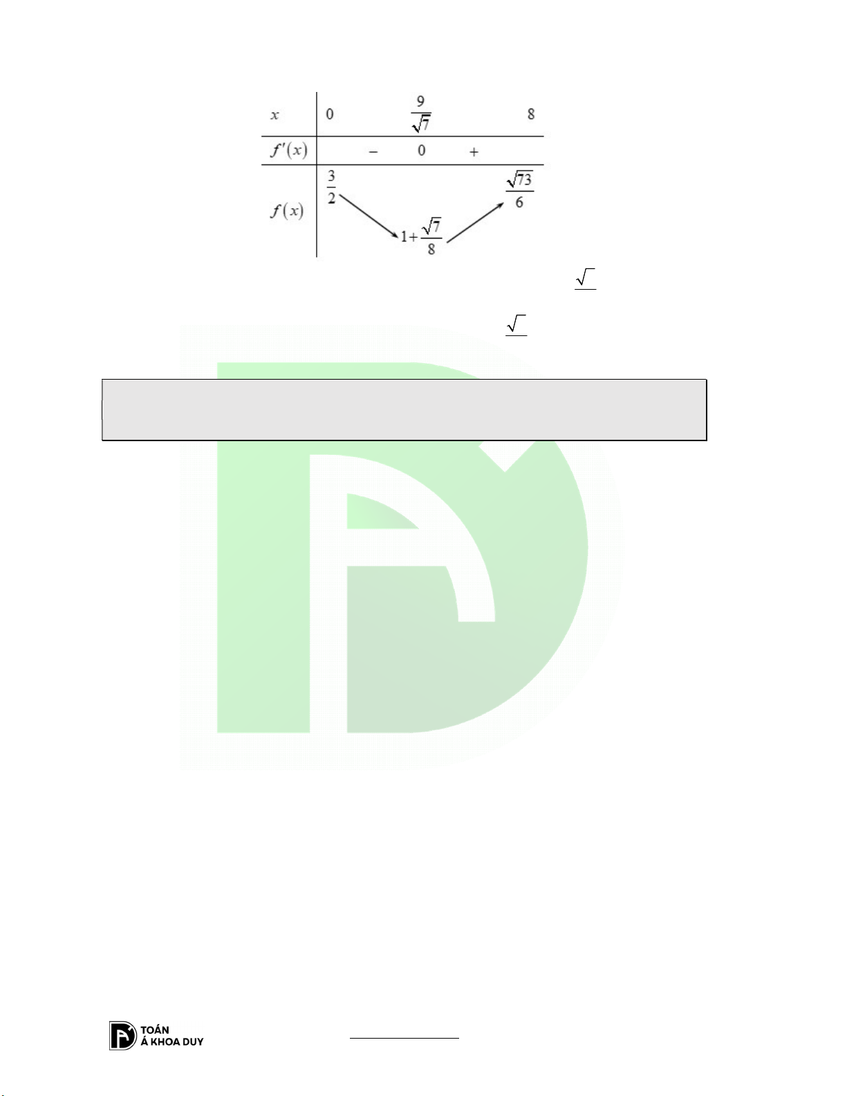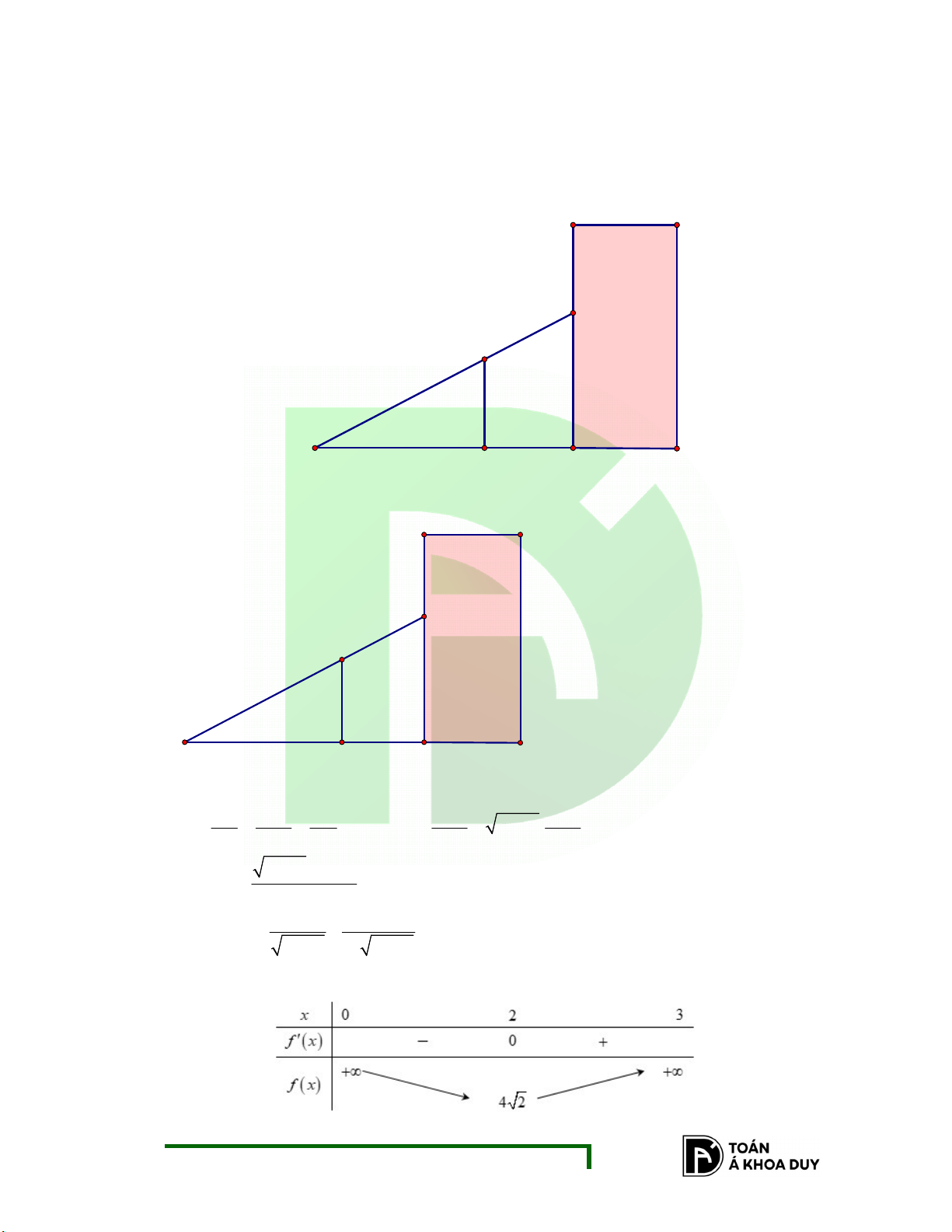 Tổng thời gian di chuyển từ A đến B là f x . 6 8 2 x 9 8 x Xét hàm số f x trên đoạn 0; 8 . 6 8 x 1 9 Ta có f x ; f x 2