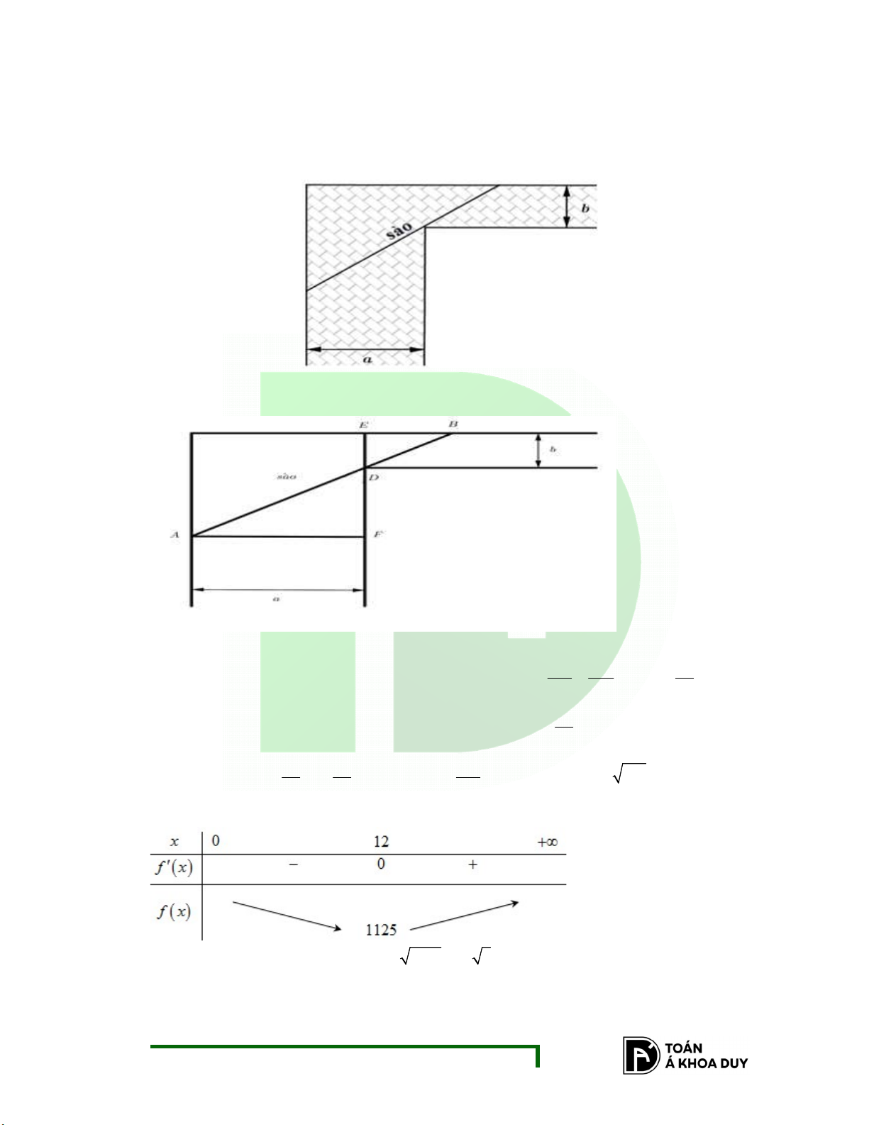 Gọi l là chiều dài của que sào, ta có l AB x b2 2 2 a f x . x 2 ab ab a b f x 2 x b 2 a 2 x b 1 ; f x 3 2 0 x a b 12 . 2 3 x x x Xét bảng sau: