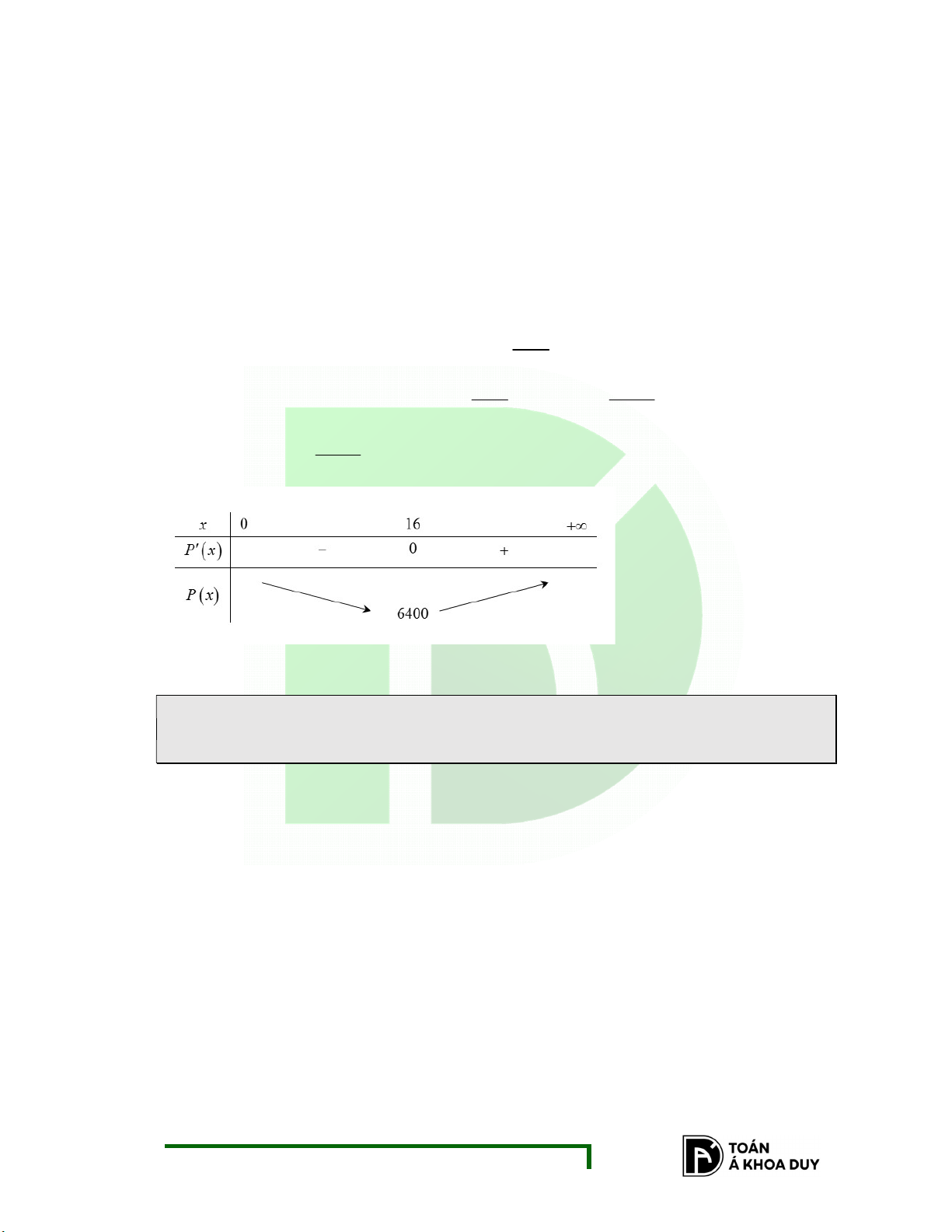 Tổng chi phí để sản xuất là: P x 8000 51200 200x .192 200x 30x x 51200 x 16 Ta có: P x 2 200 0 x 256 . 2 x x 16 L