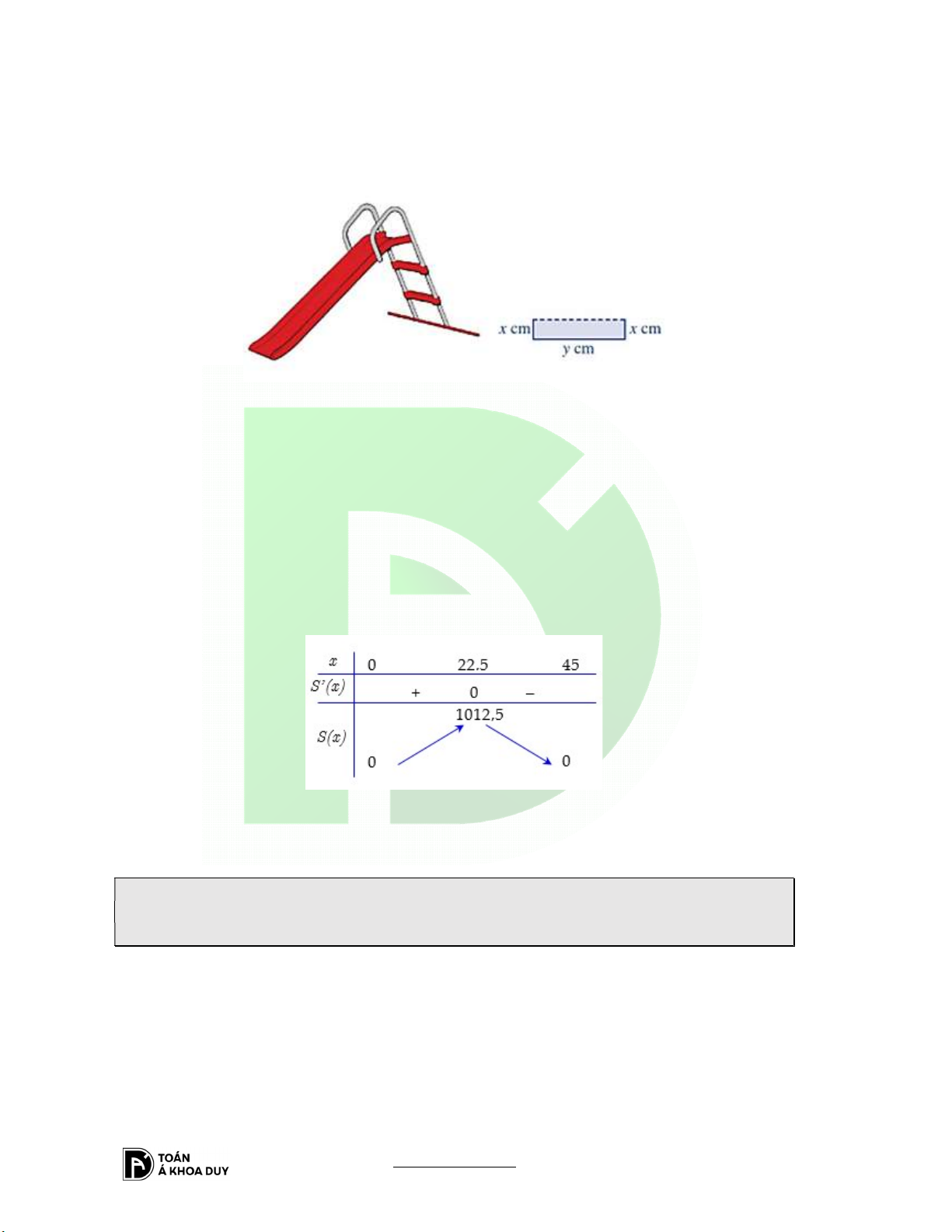 Do đó, hàm số S x đạt cực đại tại x 22,5 và S 1012,5 . CD