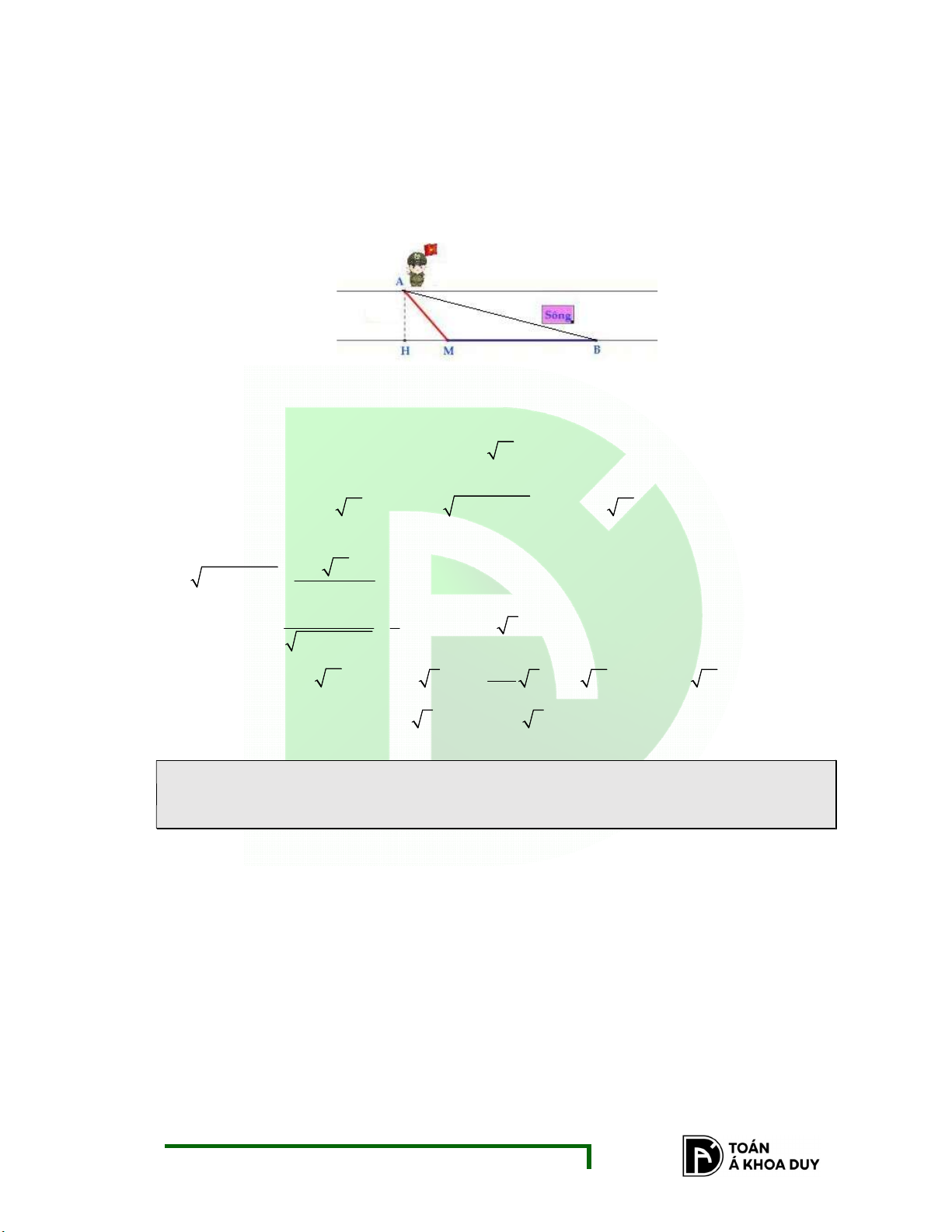Giả sử chiến sĩ bơi từ A đến M sau đó chạy bộ từ M đến B . Đặt 2