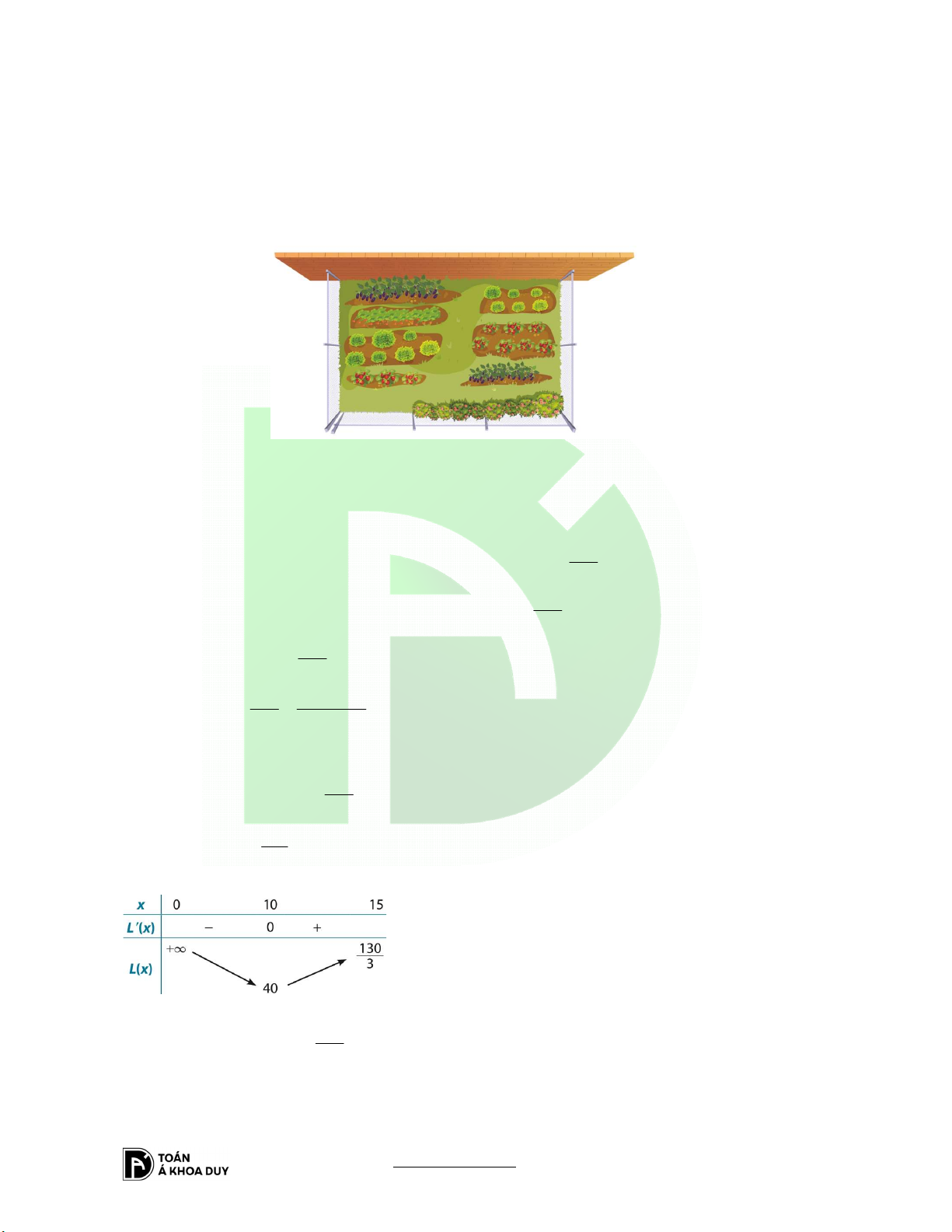 Ta có: lim L(x) lim 2x ; x 0 x 0 x 130 L(10) 40; L(15) . 3 Bảng biến thiên: