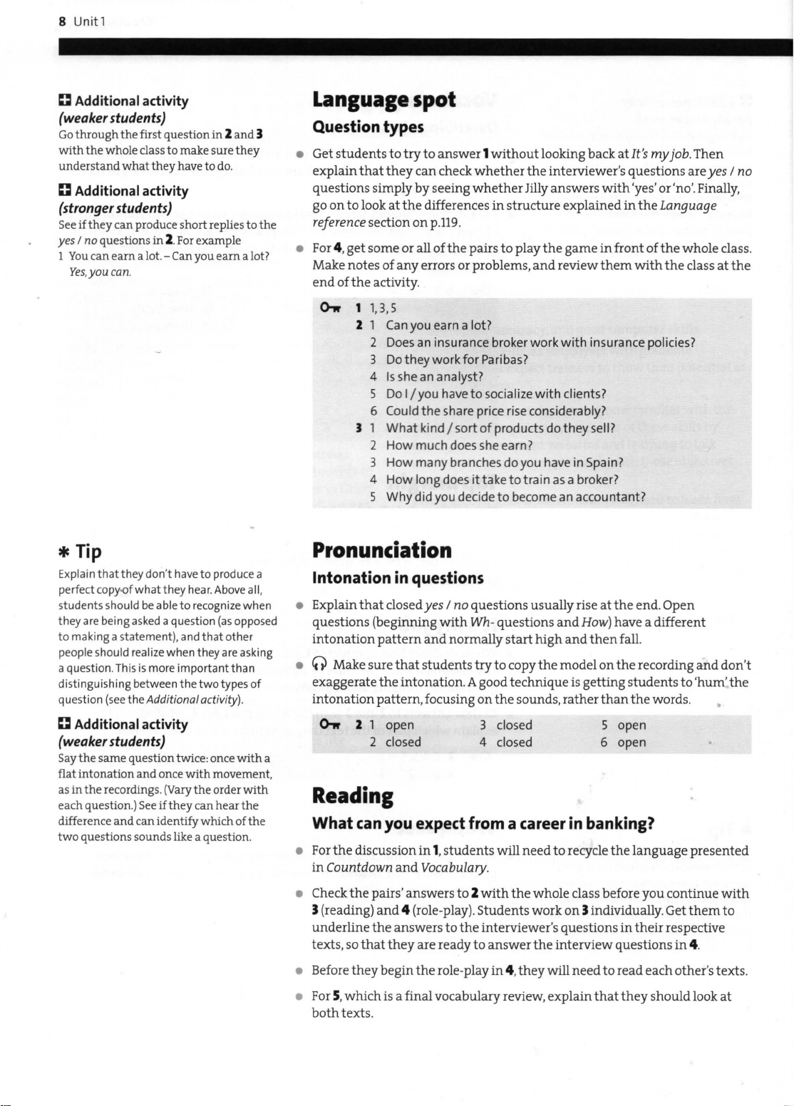 • Students answer t
