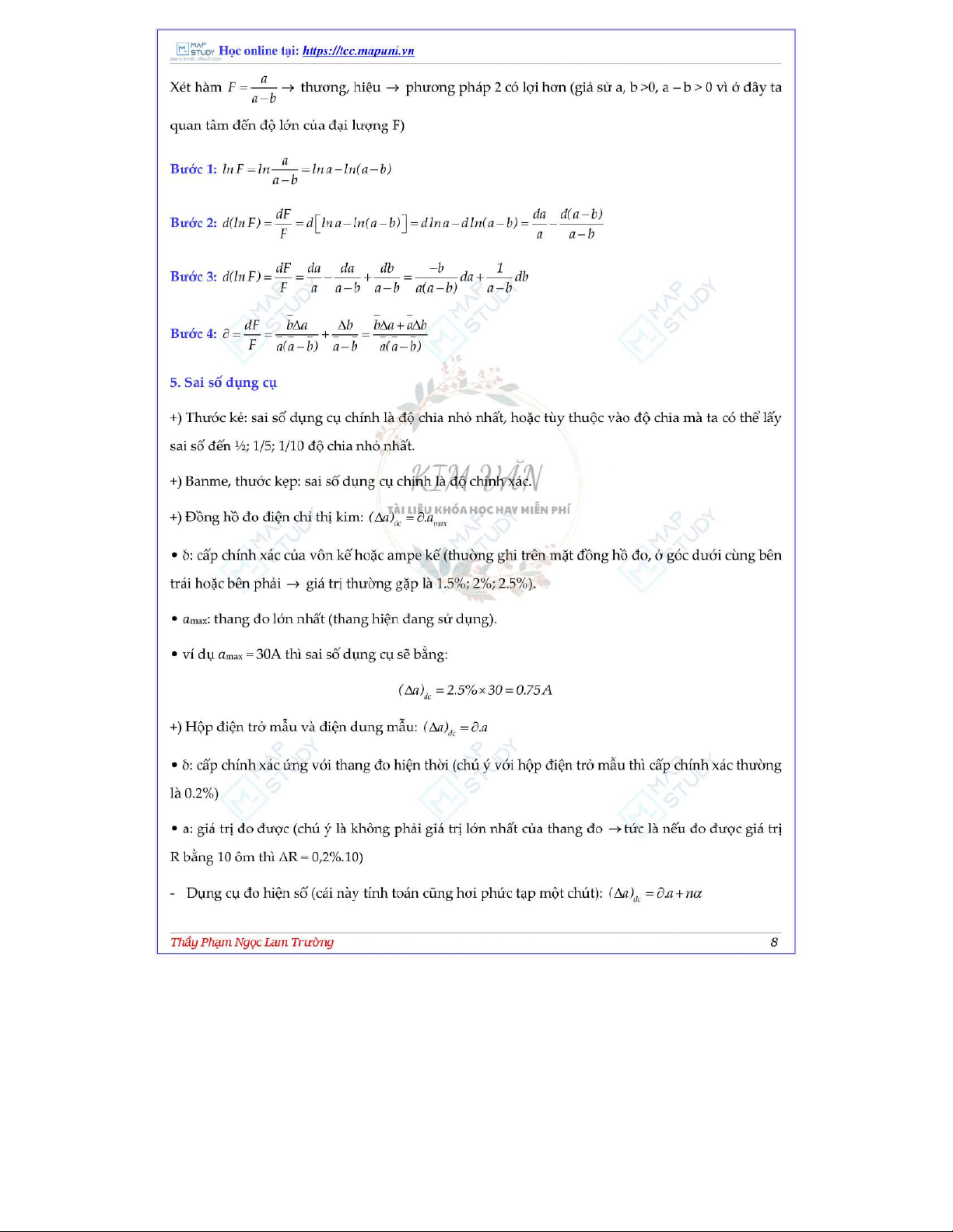 Sai Số Trong Thí Nghiệm Vật Lý môn Vật lý đại cương 2 | Học viện Công Nghệ Bưu Chính Viễn Thông