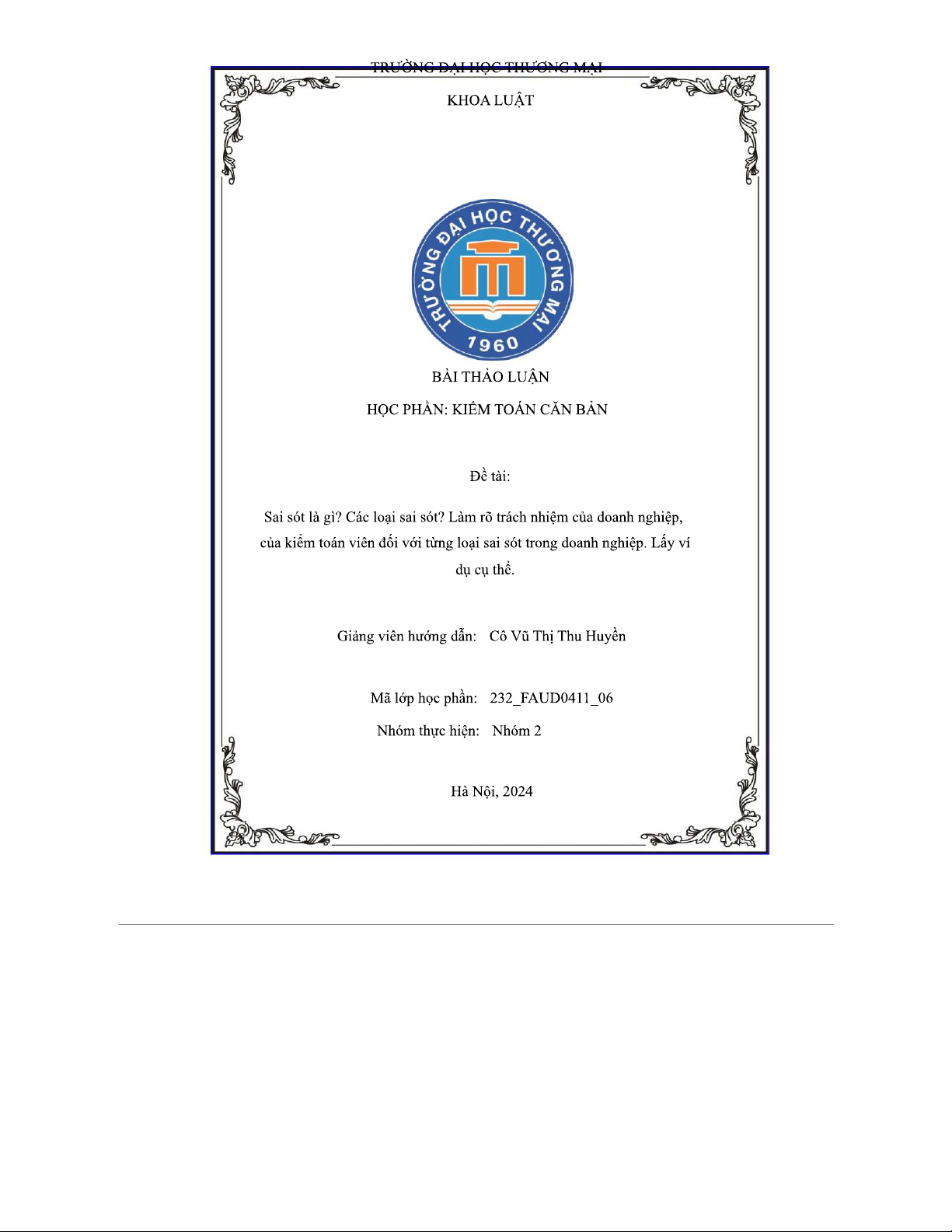 Sai sót trong doanh nghiệp và trách nhiệm kiểm toán viên - FAUD0411 Thảo luận