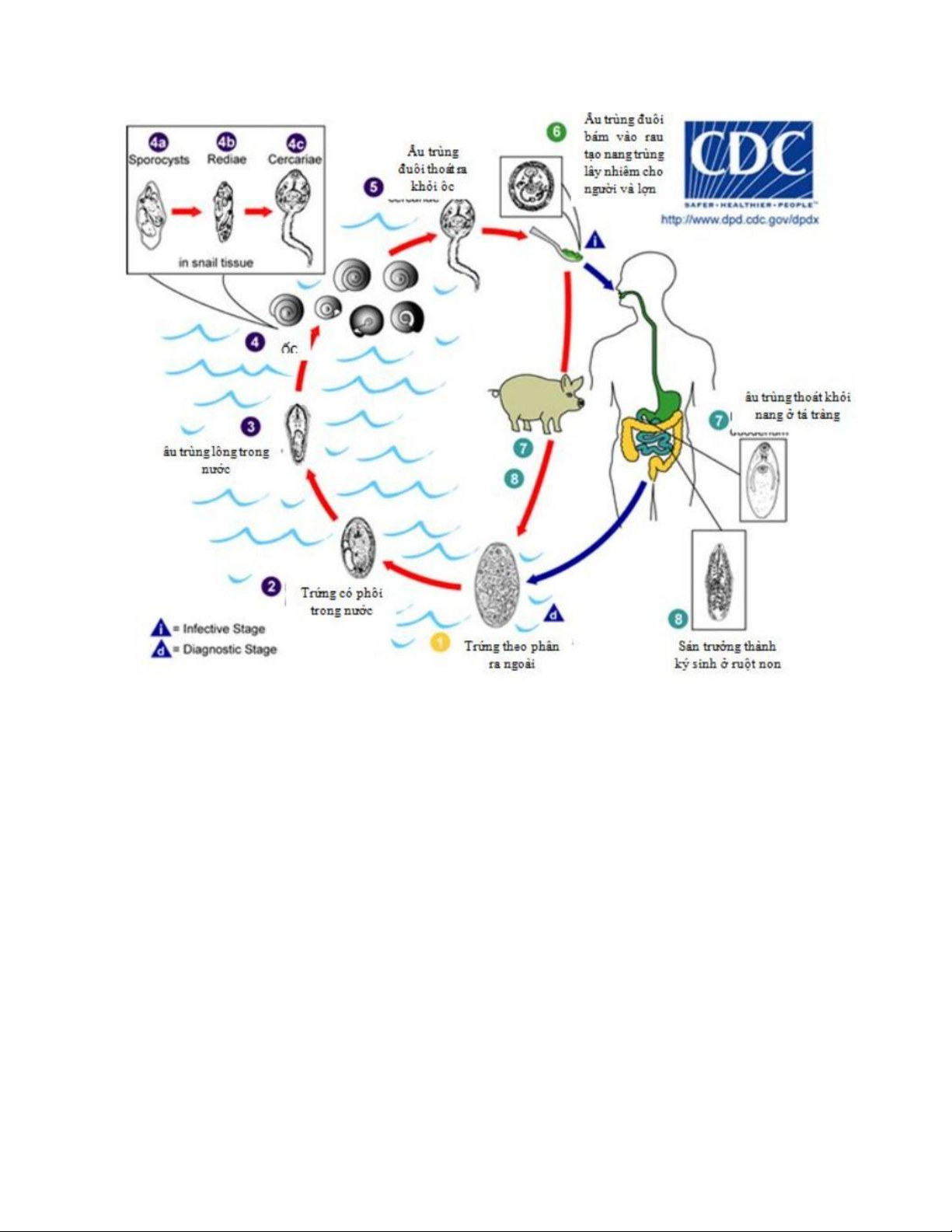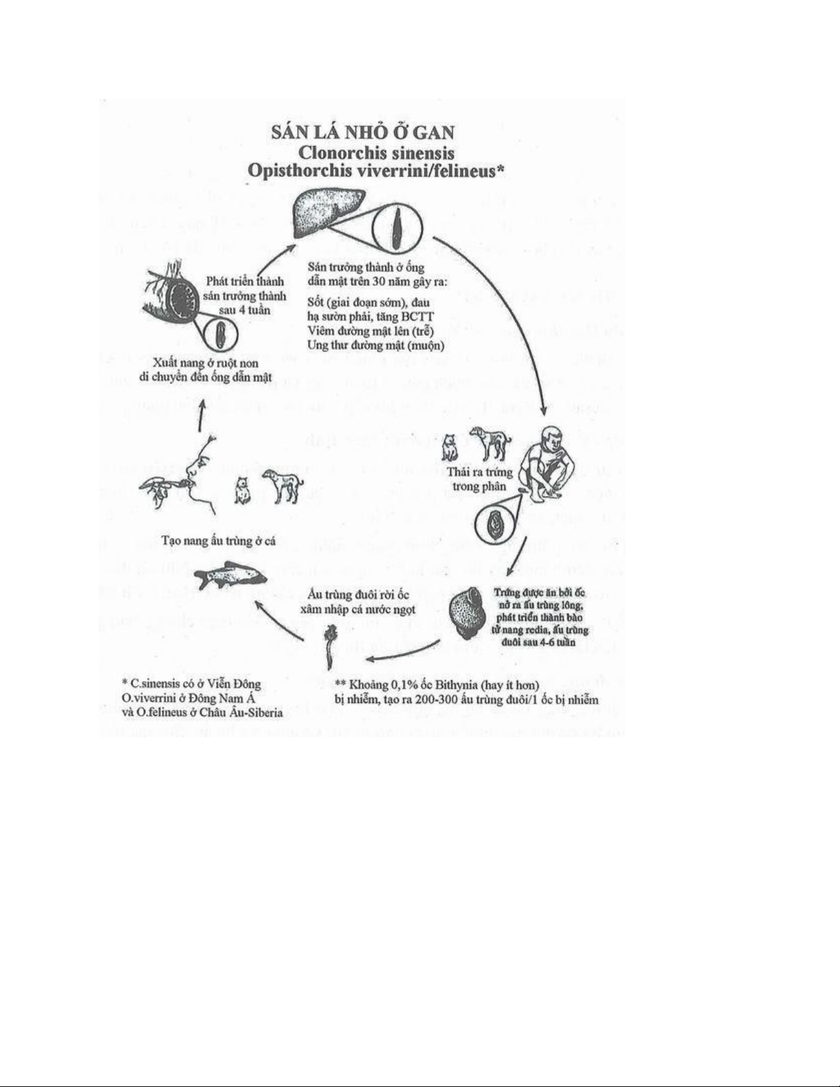 trùngnày vào dạ dày, xuống tá tràng rồi ngược theo đường mật lên gan, phát triển thành sán lá
