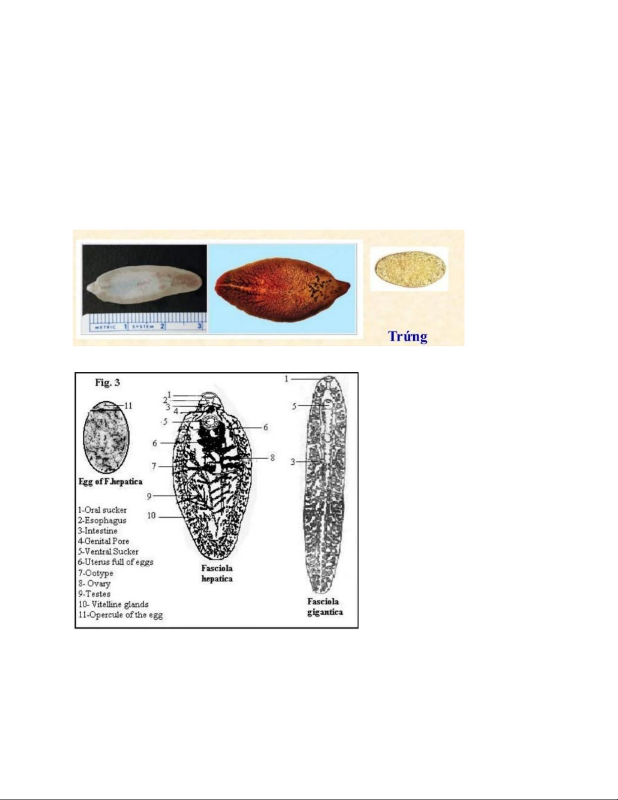 - Sán lá lớn ở ruột có thân dày, hình chiếc lá. - KT: 3-7 x 1,5-1,7cm