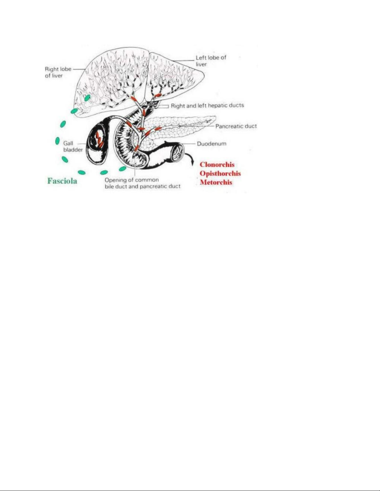 gan trưởng thành ký sinh và gây bệnh ở đường mật.