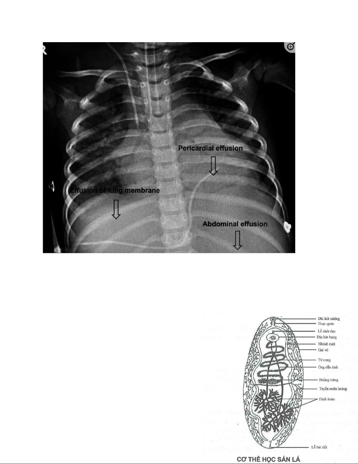 Hình ảnh: Tràn dịch màng phổi, màng ngoài tim và ổ bụng khi chụp X – quang do Fasciola spp