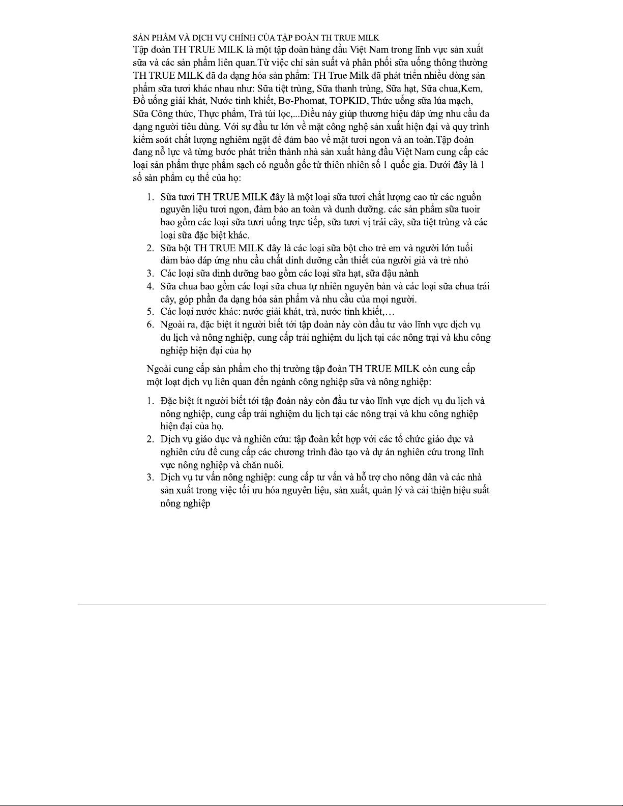 Sản phẩm và dịch vụ của Tập đoàn TH TRUE MILK - Phân tích chi tiết