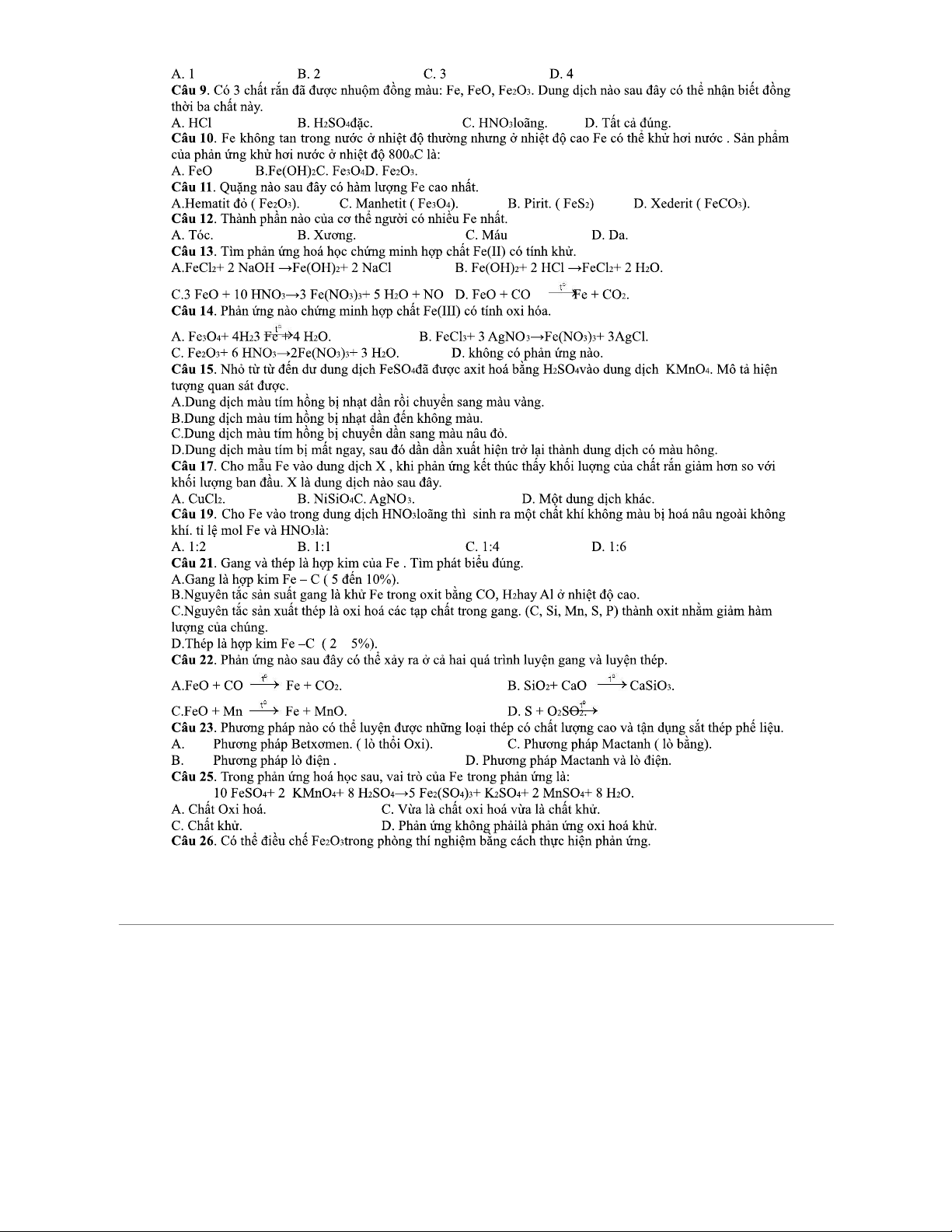 360 câu hỏi trắc nghiệm có đáp án môn Hóa học lớp 12: Crom, sắt, đồng, niken, chì, kẽm, vàng, bạc, thiếc