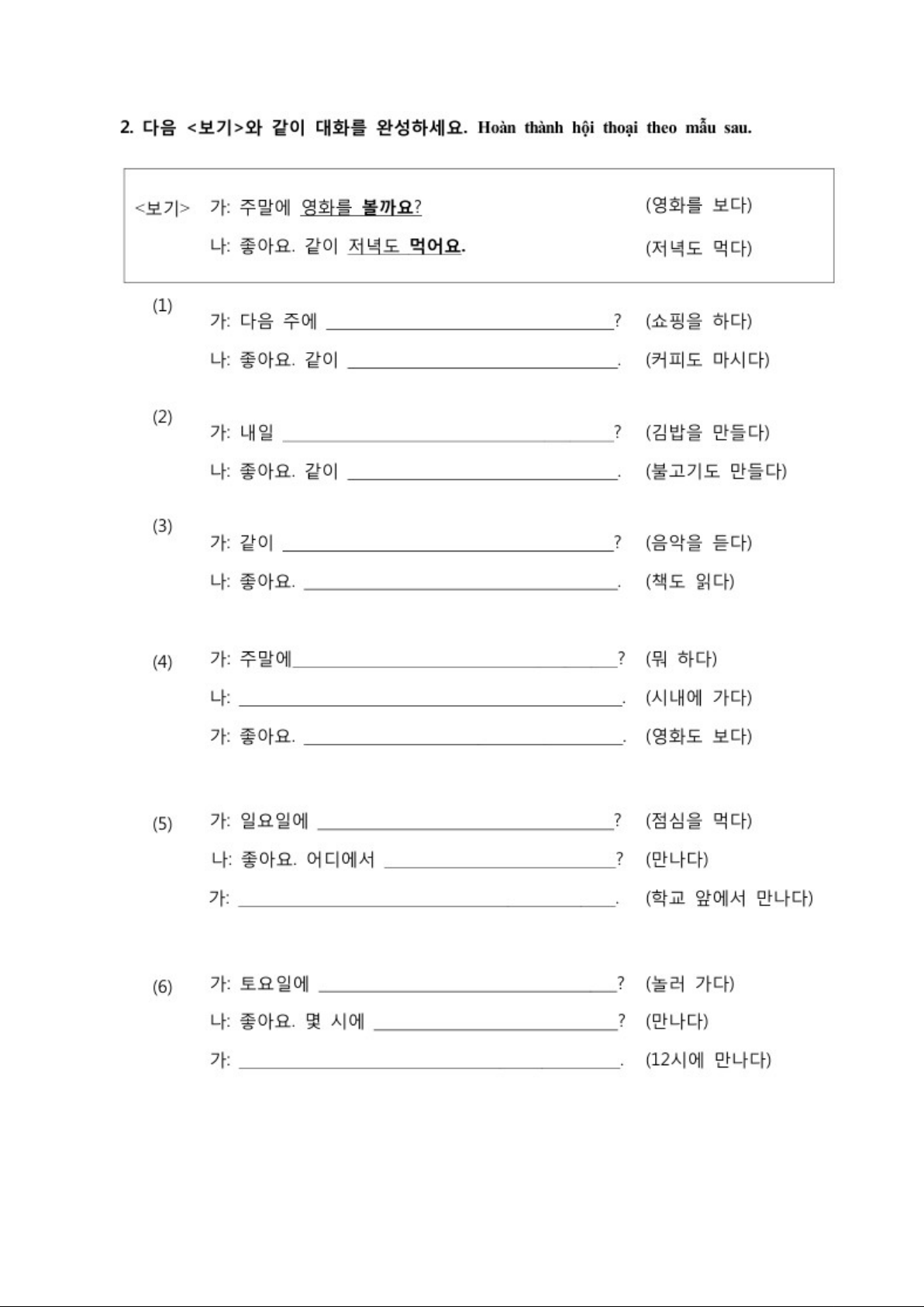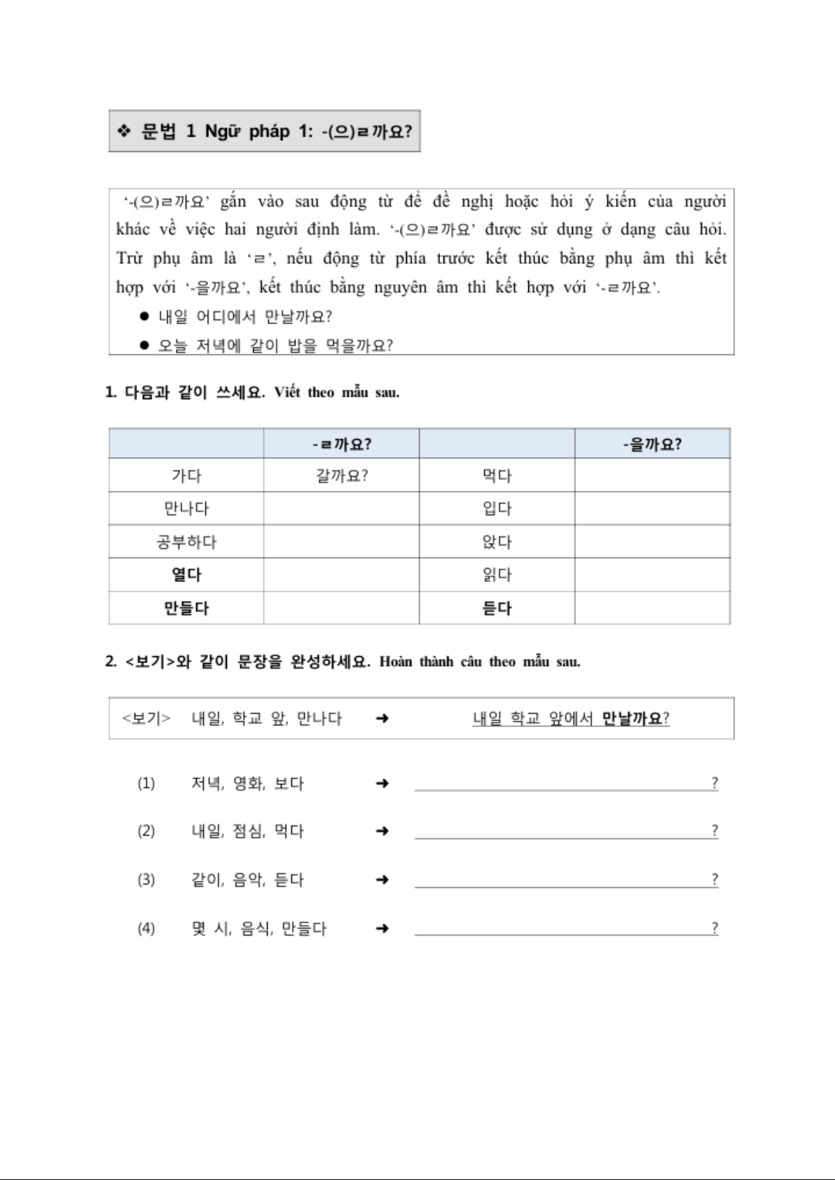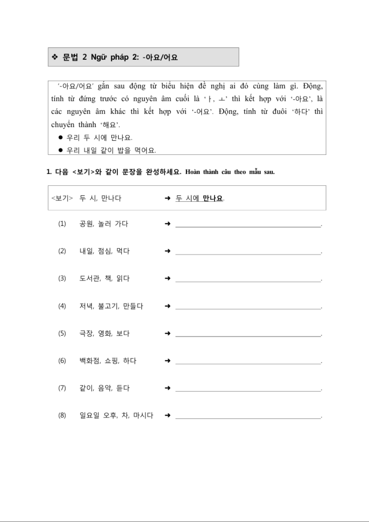 Bài tập bài 9 Sejong 1A | Ngữ pháp Tiếng Hàn
