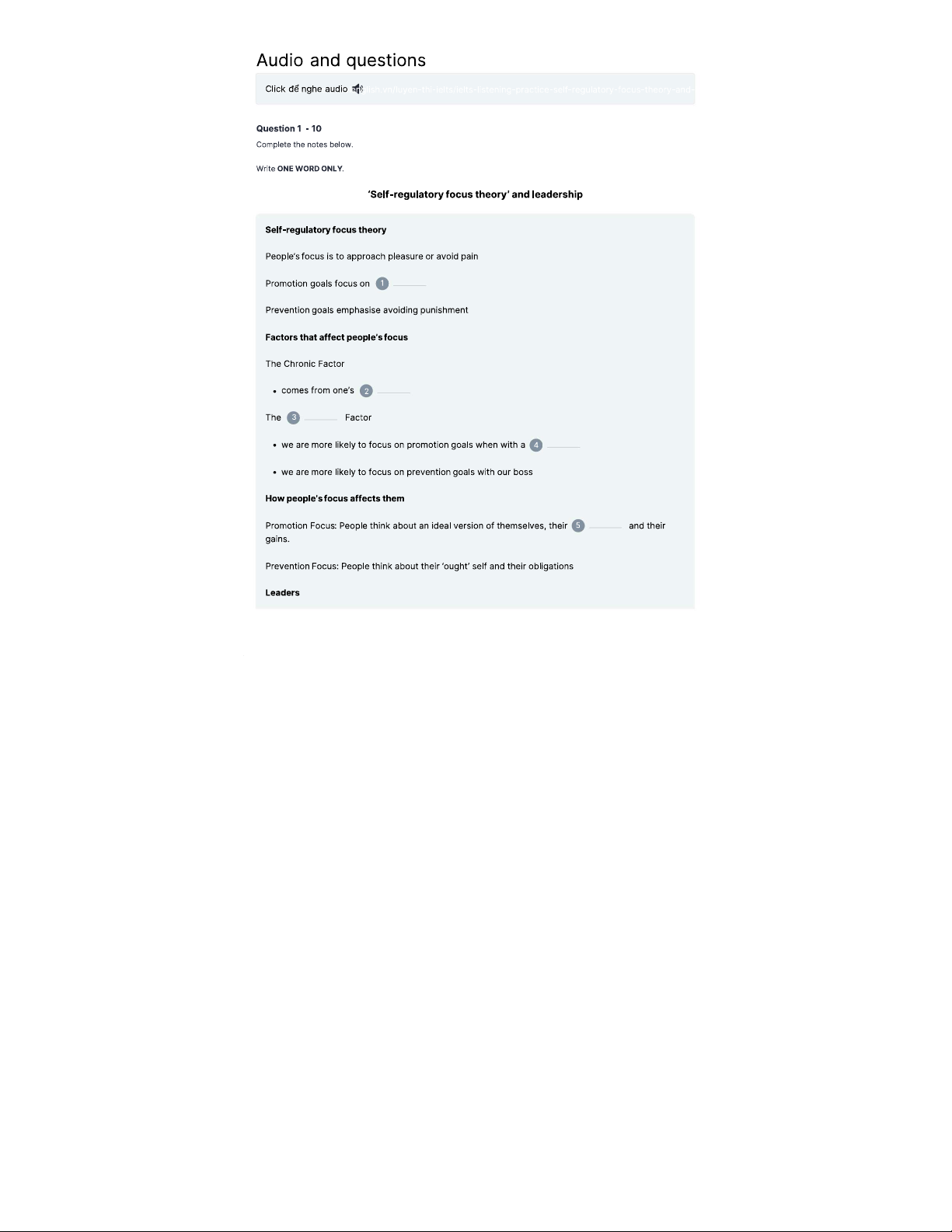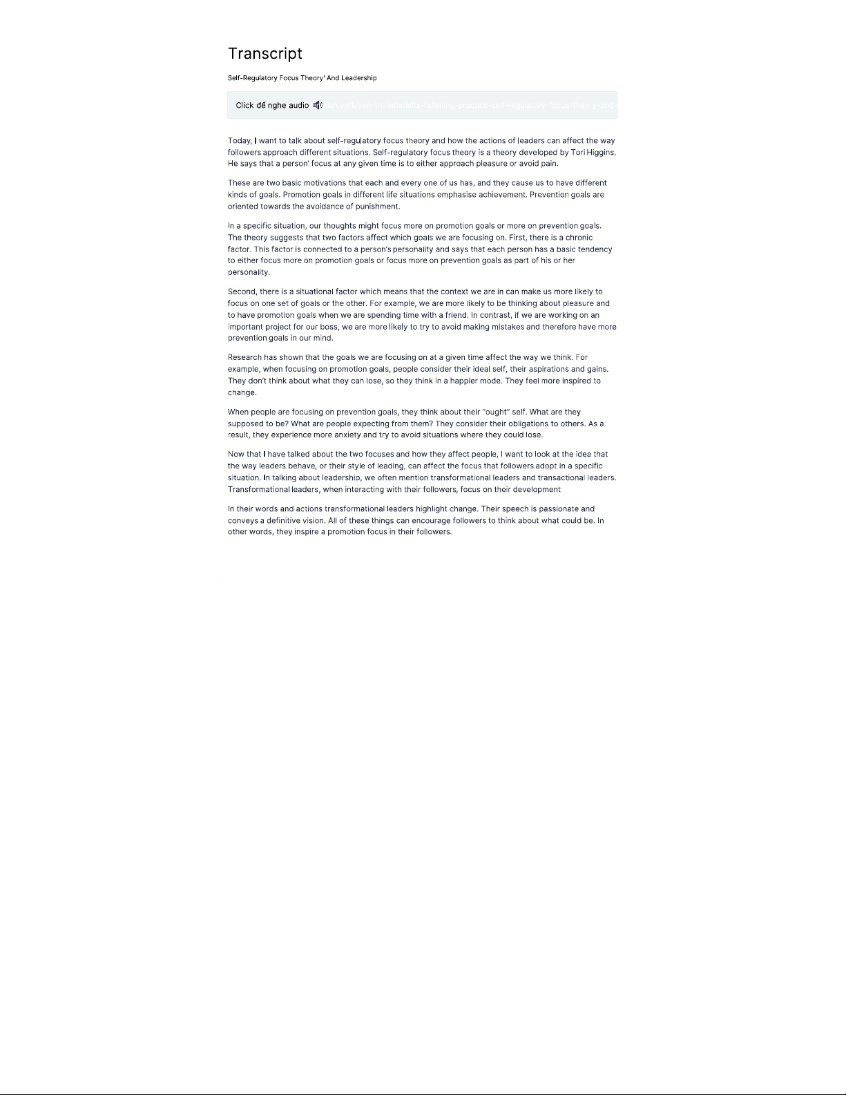 Self-Regulatory Focus Theory and Leadership in IELTS Listening Practice