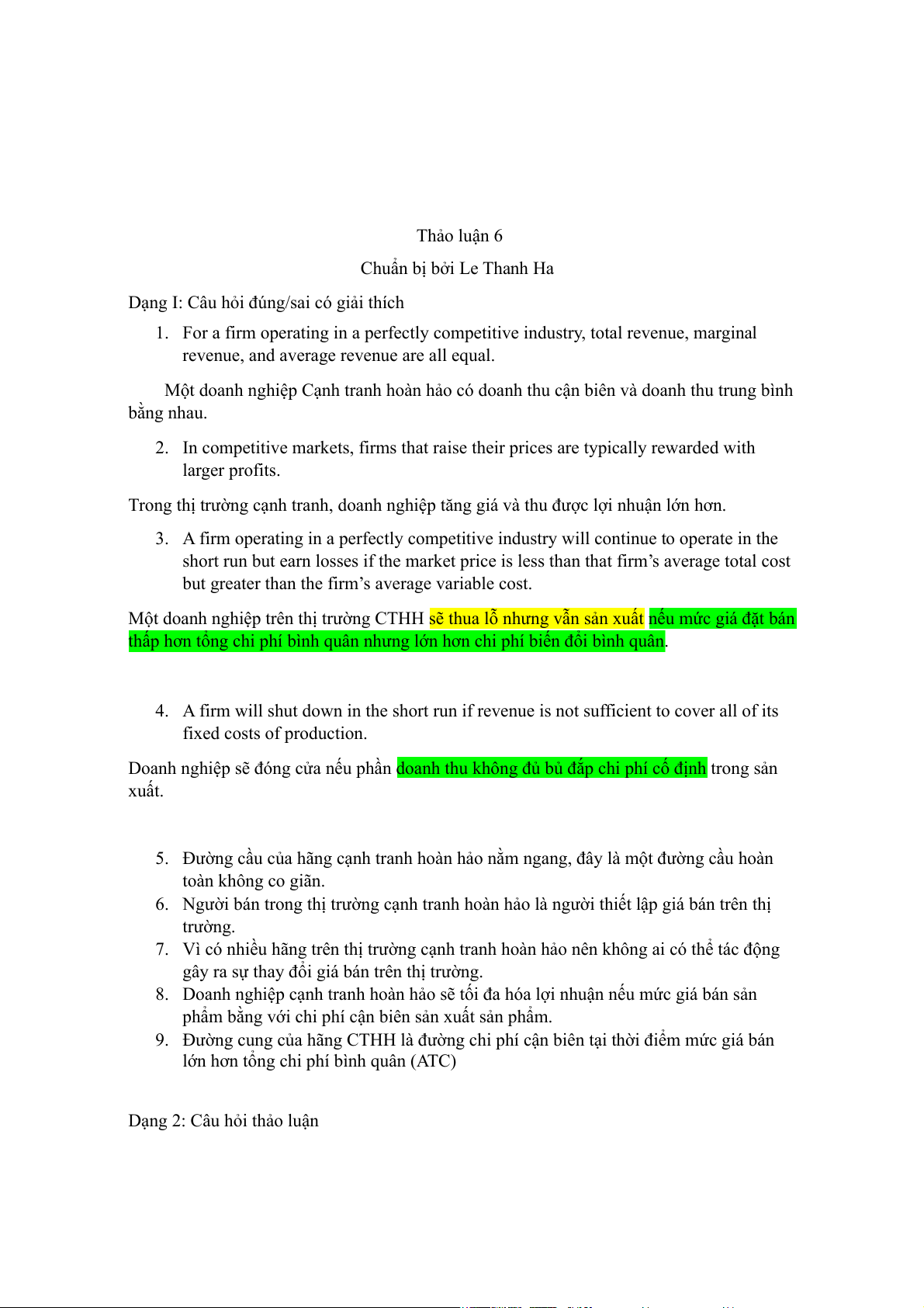 Thảo luận 6 Chuẩn bị bởi Le Thanh Ha