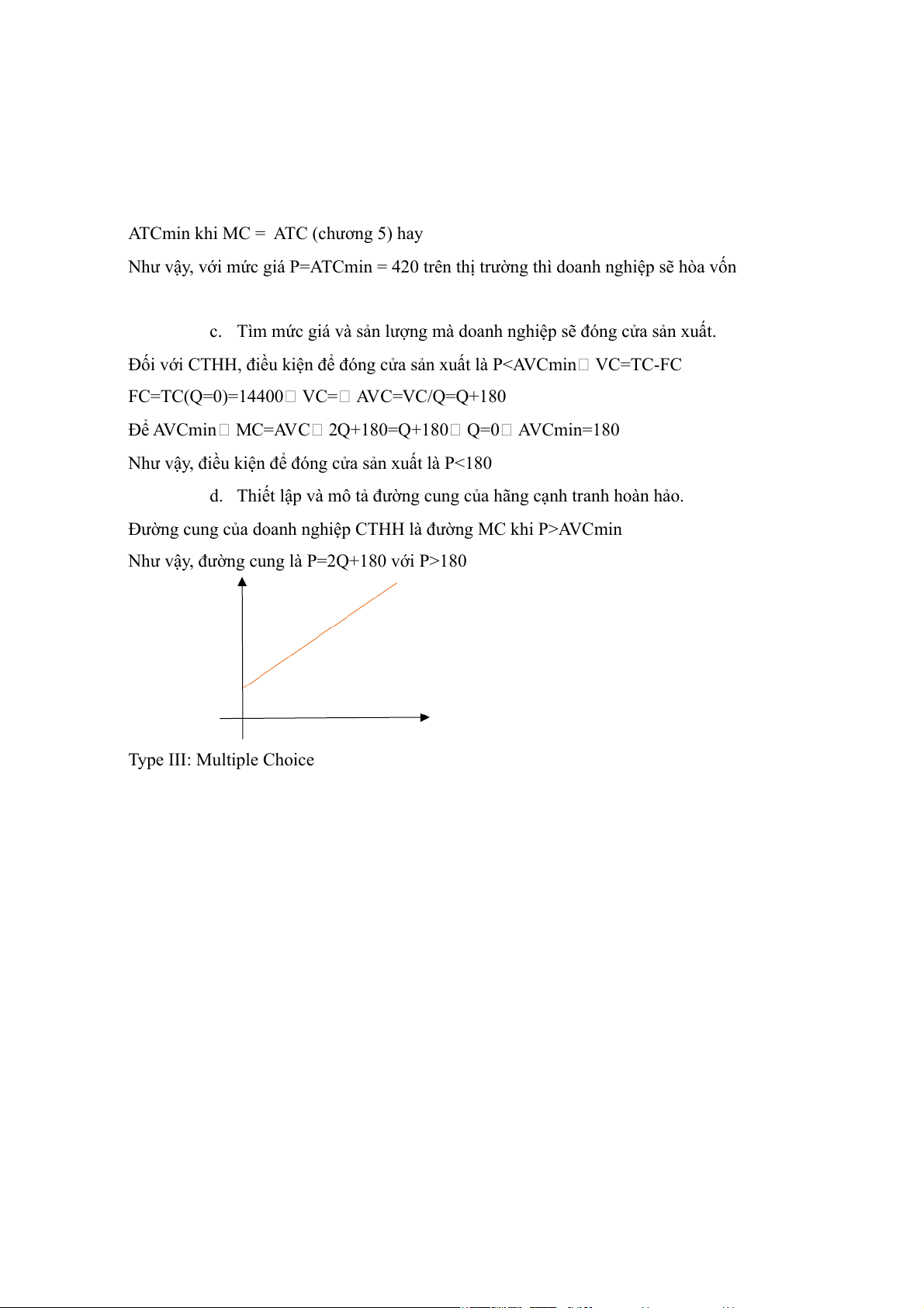 Như vậy, đường cung là P=2Q+180 với P>180 Type III: Multiple Choice