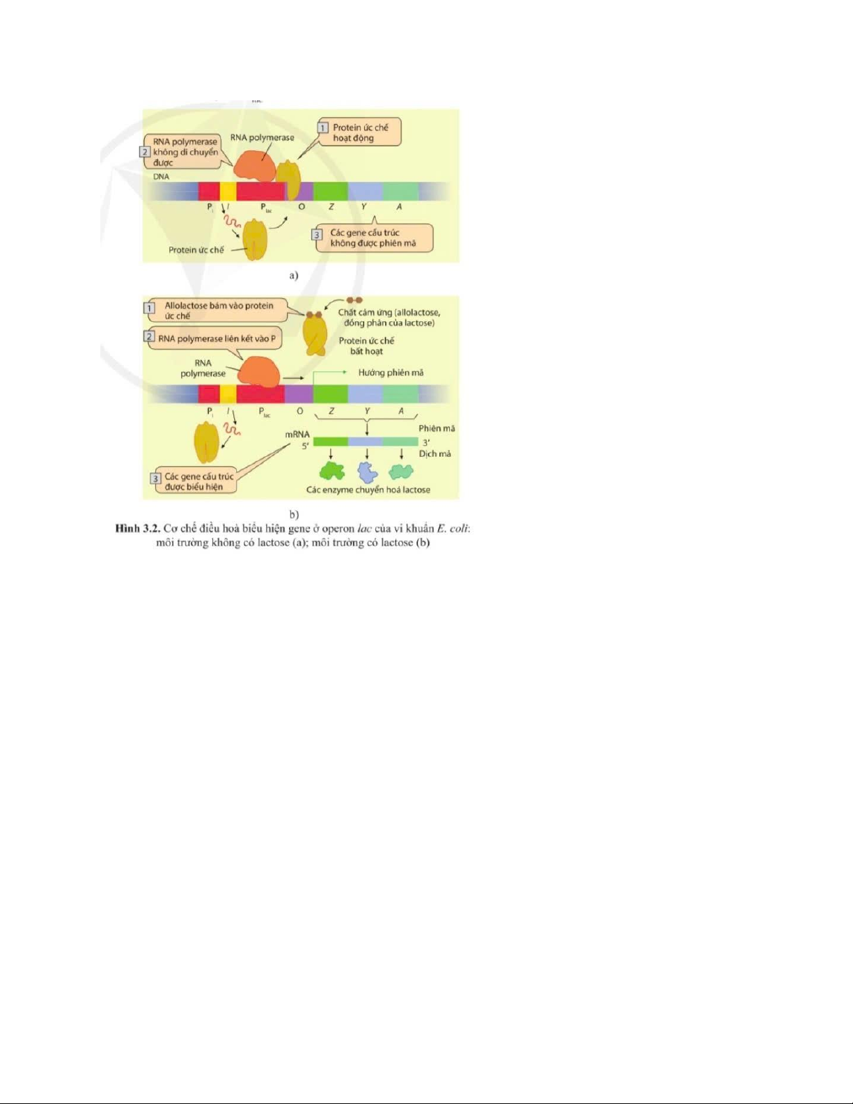 các enzyme tham gia chuyển hoá lactose. Các gene này được phiên mà thành một mRNA