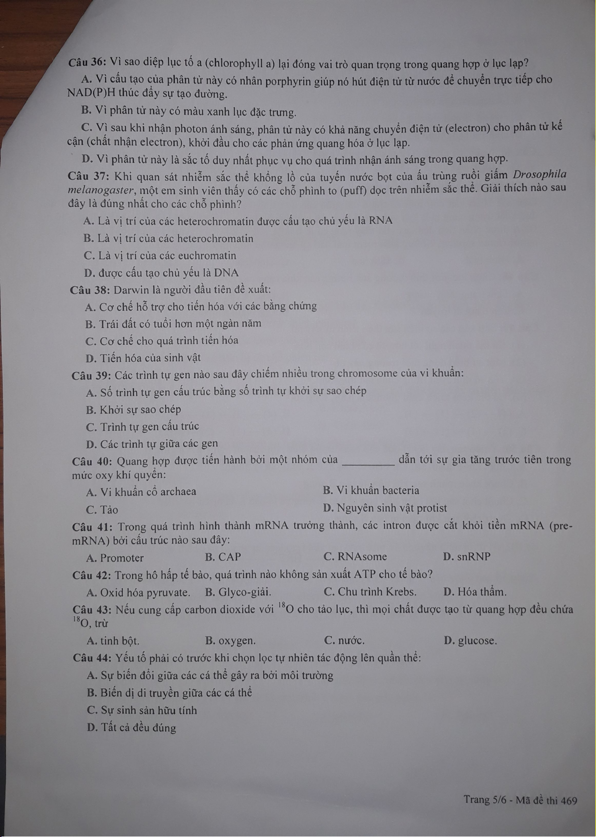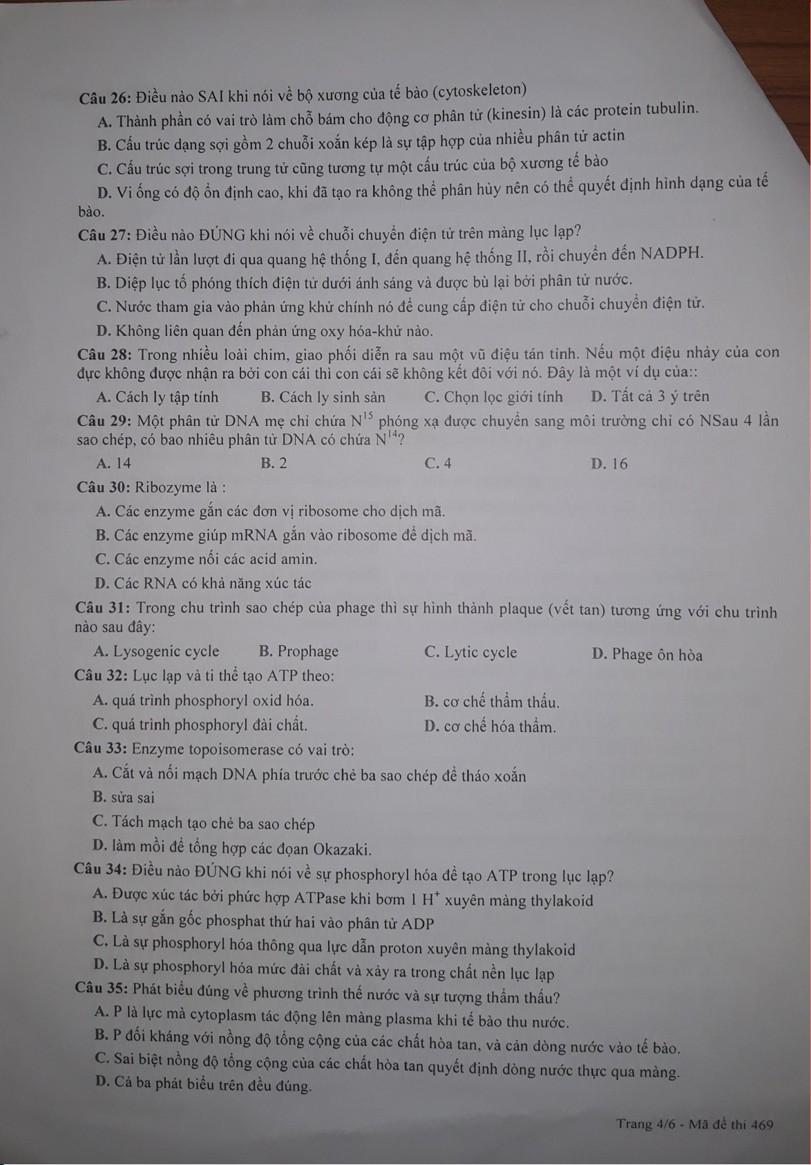 Đề thi cuối HKI học phần Sinh học đại cương 1 năm 2024 - 2025 | Trường Đại học Khoa học tự nhiên, Đại học Quốc gia Thành phố Hồ Chí Minh