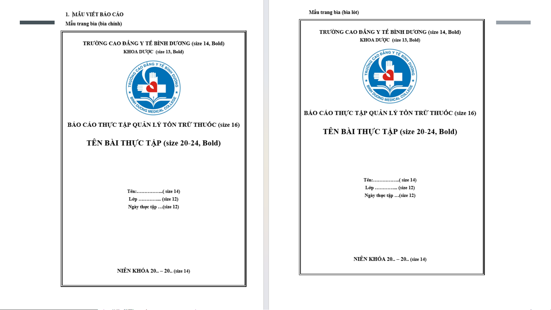+ Môn KNGTBH: 1 quyển báo cáo/ 1 sinh viên