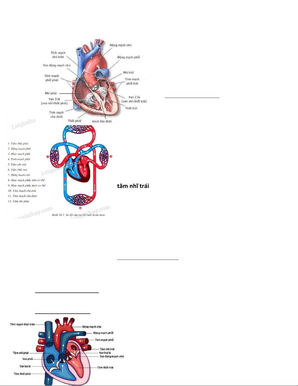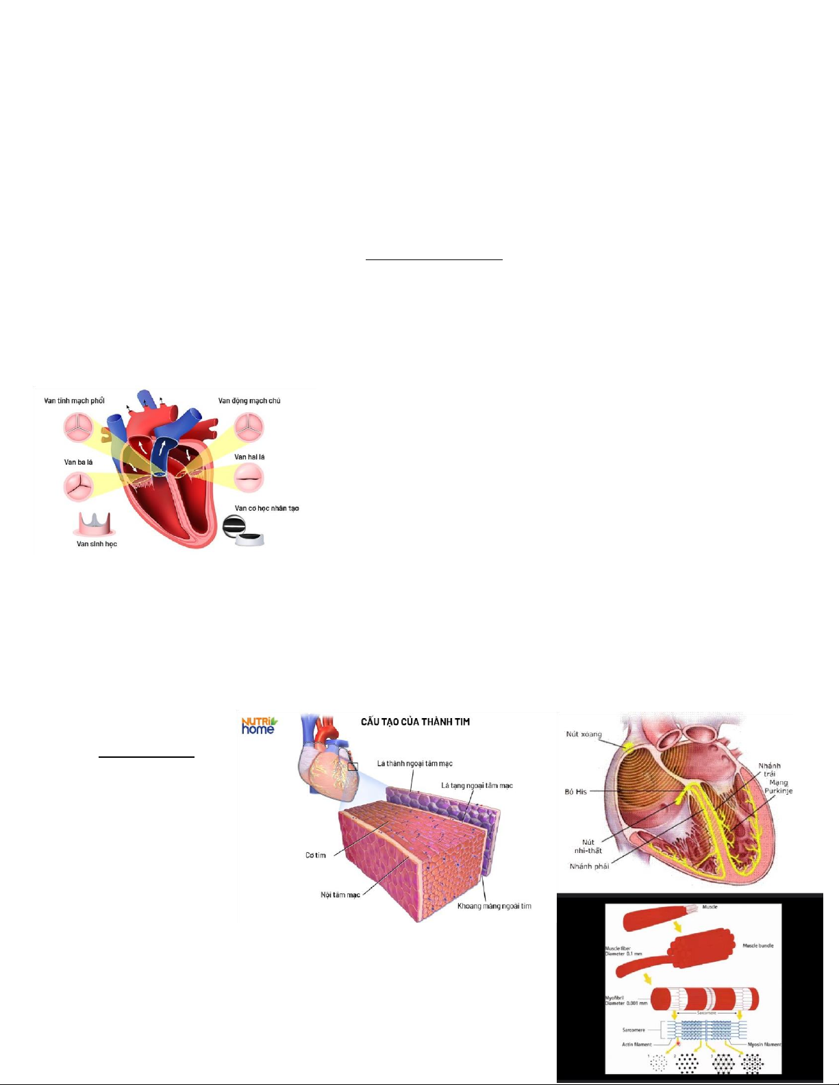 van nhĩ thất mở thì van động mạch đóng và ngược lại -Có 3 lớp tim:- trong nội tâm mạc (phủ cả van tim) -ngoài :ngoại tâm mạc (dưới nó có dịch bảo vệ tim