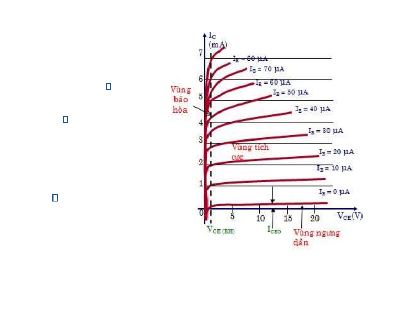 Vùng ngưngdẫn (cut off) I CBO IC= ICBO 0
