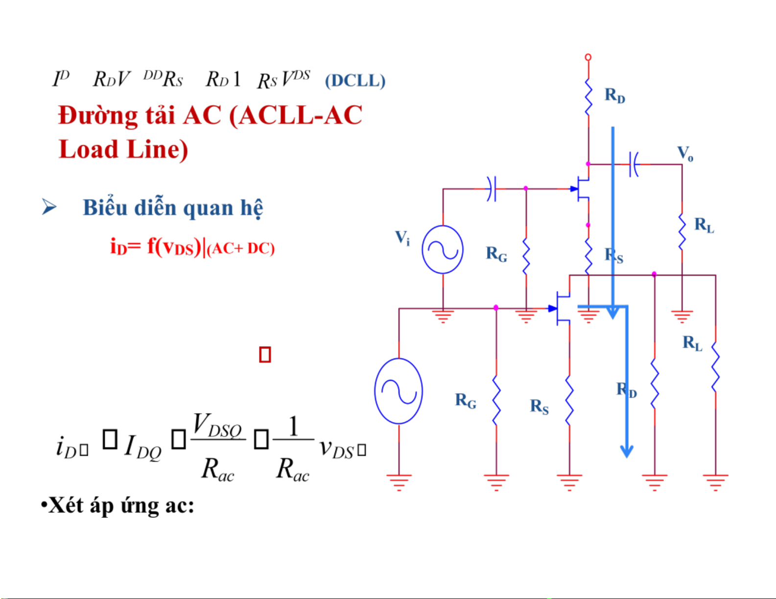 ĐL Kirchhoff cho mạch vòng DS Vdd •Xét áp ứng DC Mạch vòng DS
