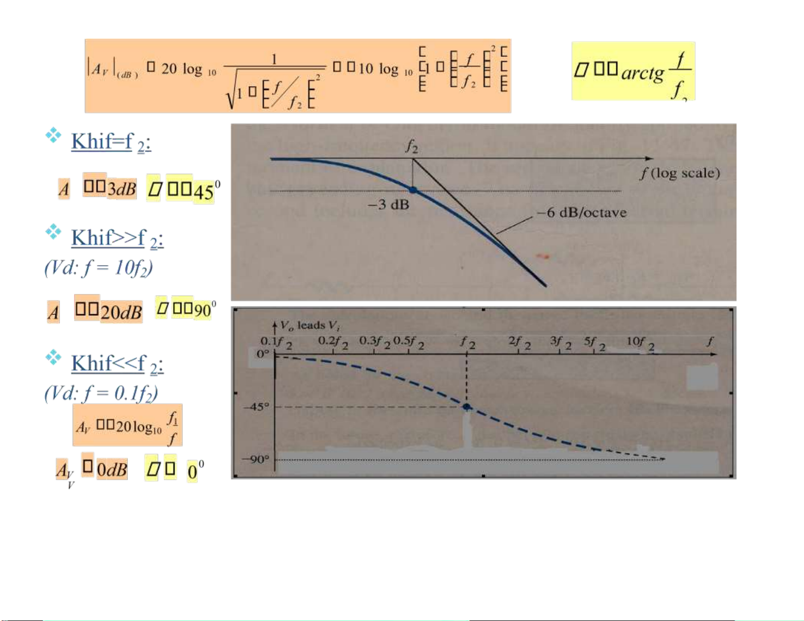 7.5.1.1 Mạch lọc thông cao Biên ộ của A V: Pha: f1 arctg f AV tính theo dB: