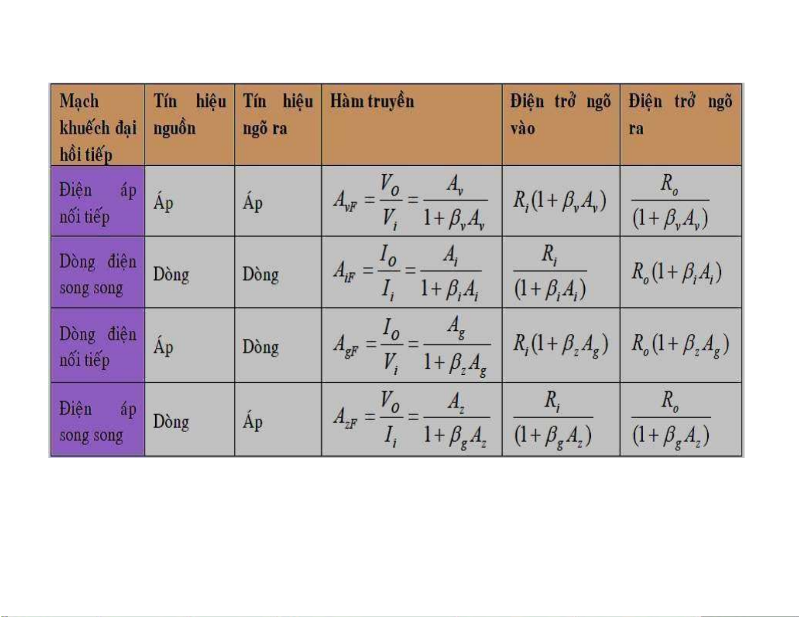 Có nhiều loại mạch hồi tiếp nhưng về cơ bản có