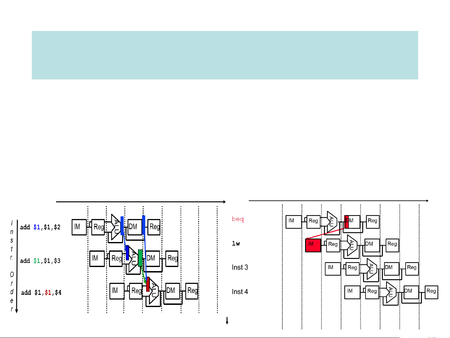 ➢ data hazards: attempt to use data before it is ready, e.g. an instruction’s