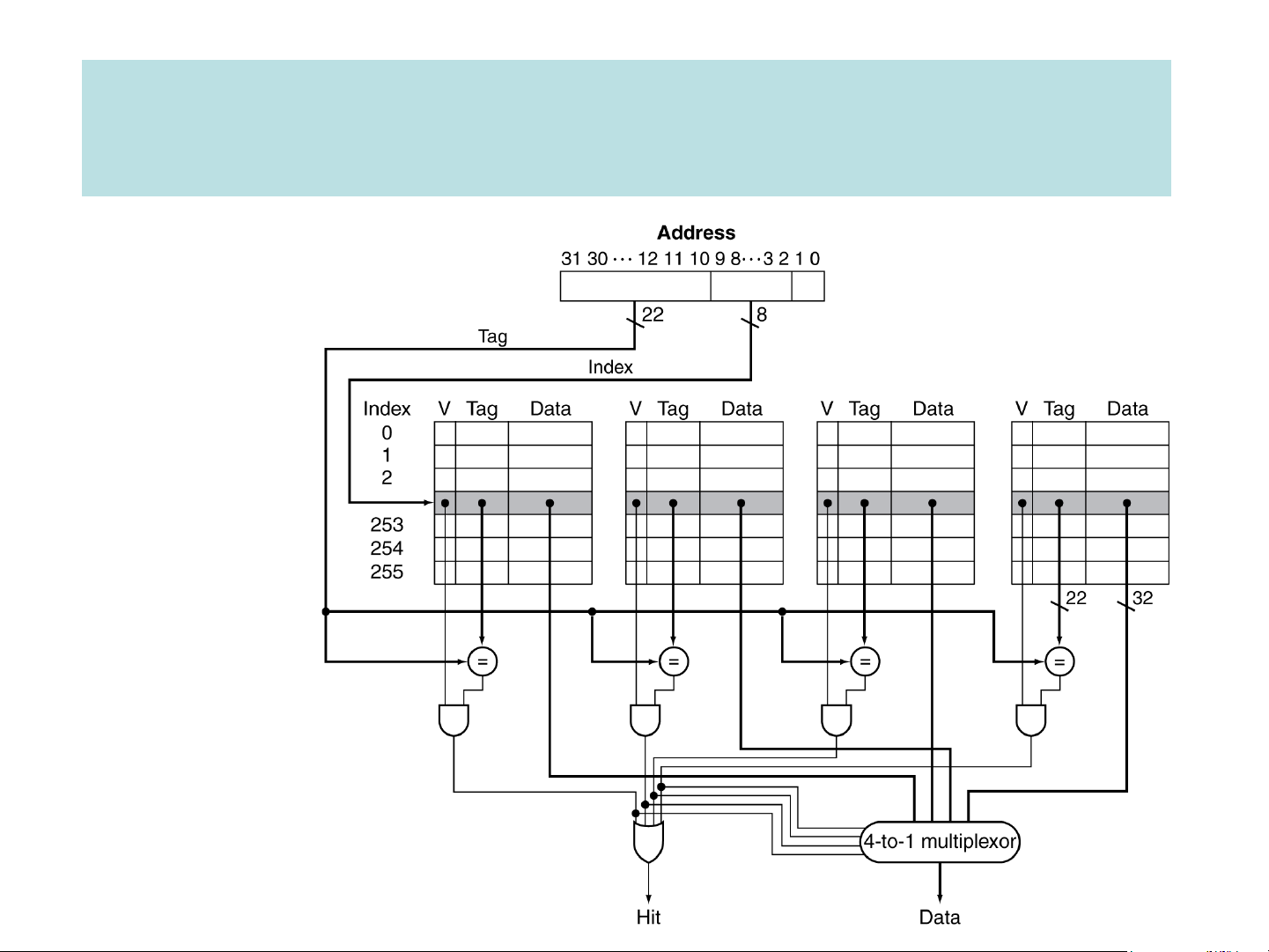 ➢ Spatial Locality: a program tends to reference a cluster of memory locations at a time. Direct-map cache Four-Way Set Associative Cache 28 = 256 sets each with Way 0 Way 1 Way 2 Way 3 four ways (each with one block) Cache performance ❑ Performance measure
