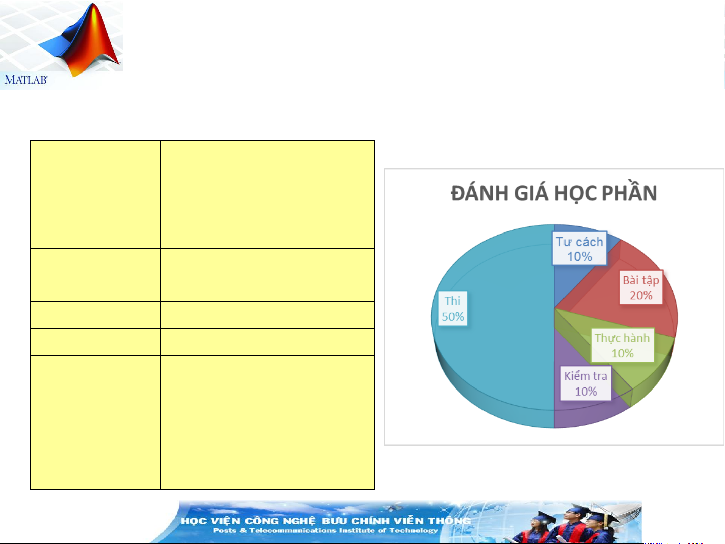 20% (Bài tập chương và các bài tập lớn môn học) Thực hành • 10% Kiểm tra • 10% Bài thi cuối kỳ •