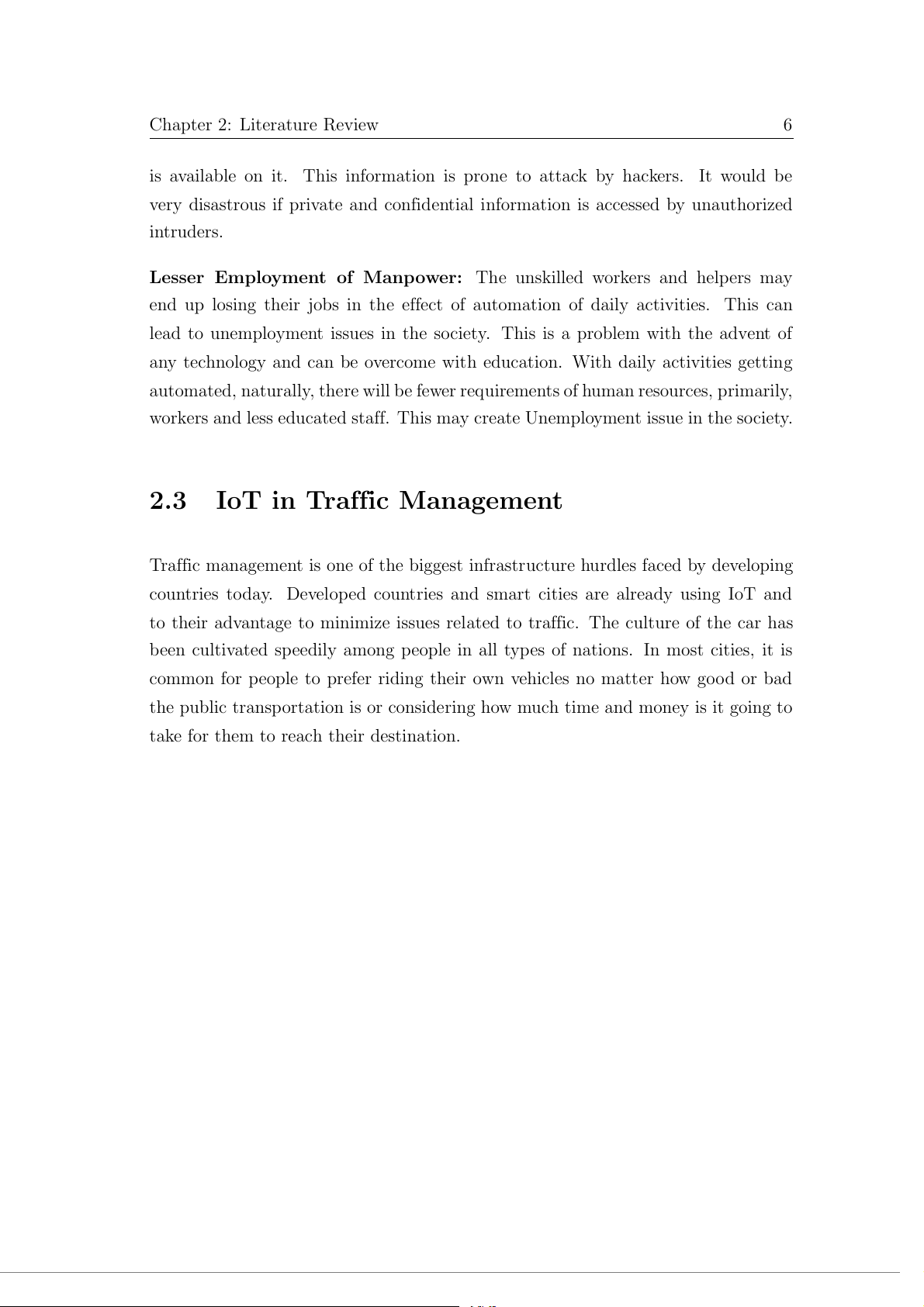 workers and less educated staff. This may create Unemployment issue in the society. 2.3 IoT in Traffic Management