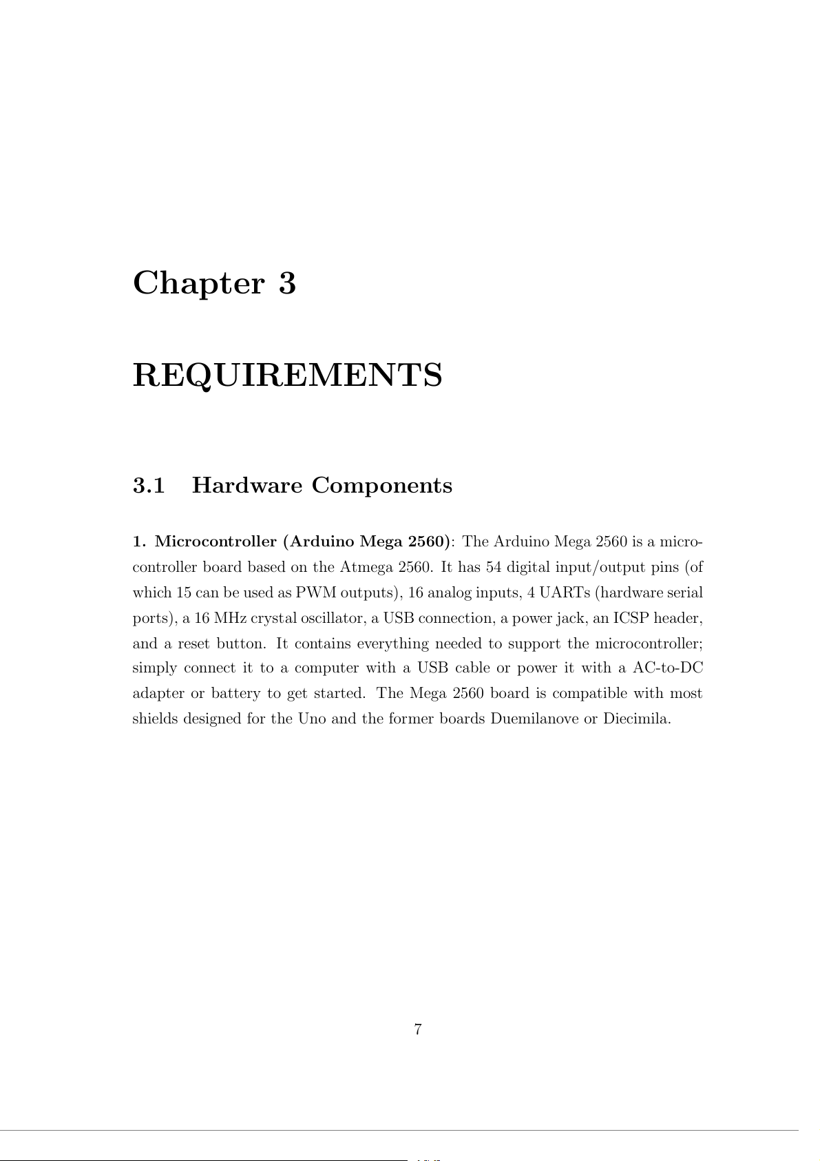shields designed for the Uno and the former boards Duemilanove or Diecimila. 7 Chapter 3: Requirements 8 Figure 3.1: Arduino Mega 2560.