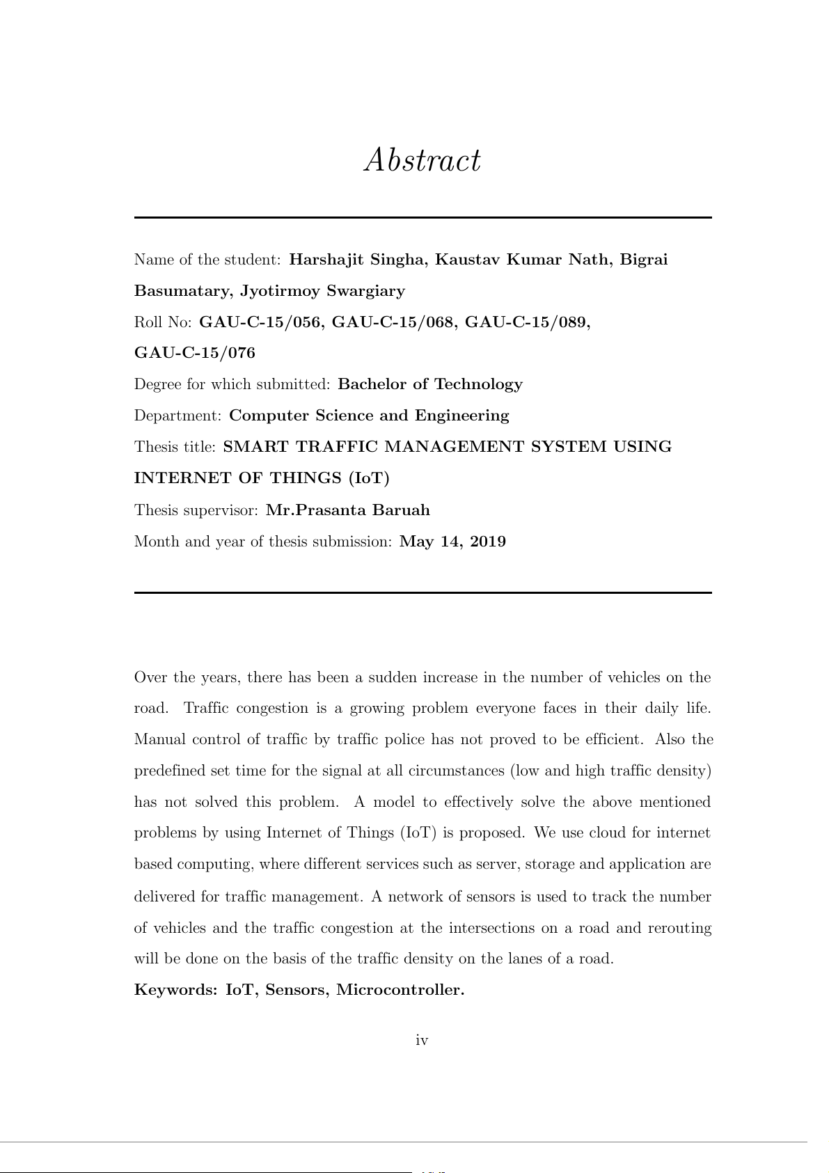 Thesis title: SMART TRAFFIC MANAGEMENT SYSTEM USING INTERNET OF THINGS (IoT)