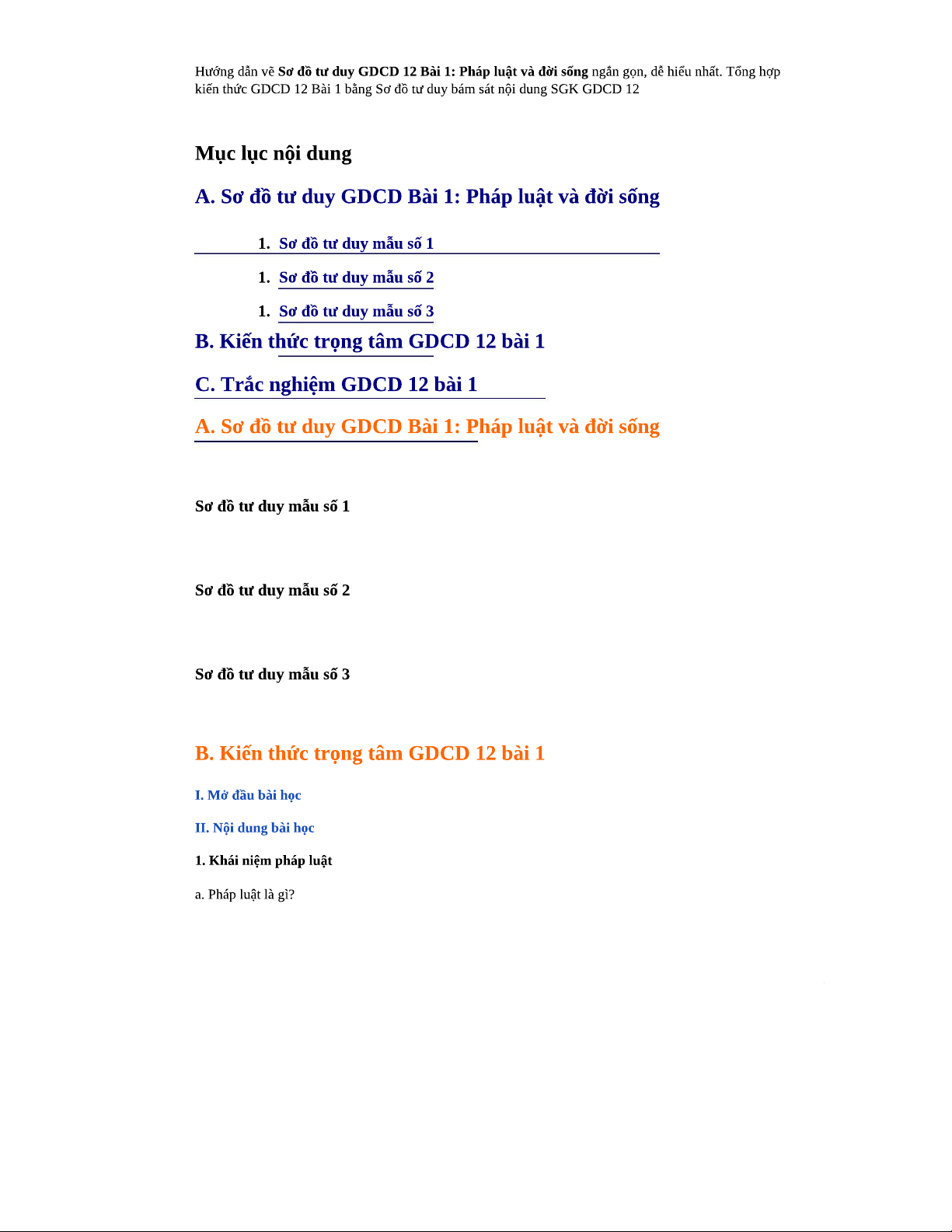 Sơ đồ tư duy GDCD 12 - Bài 1: Pháp luật và Đời sống