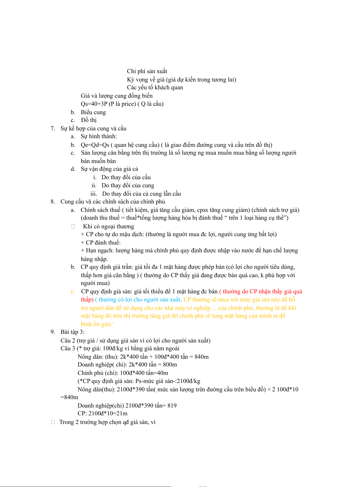c. CP quy định giá sàn: giá tối thiểu để 1 mặt hàng đc bán ( thường do CP nhận thấy giá quá