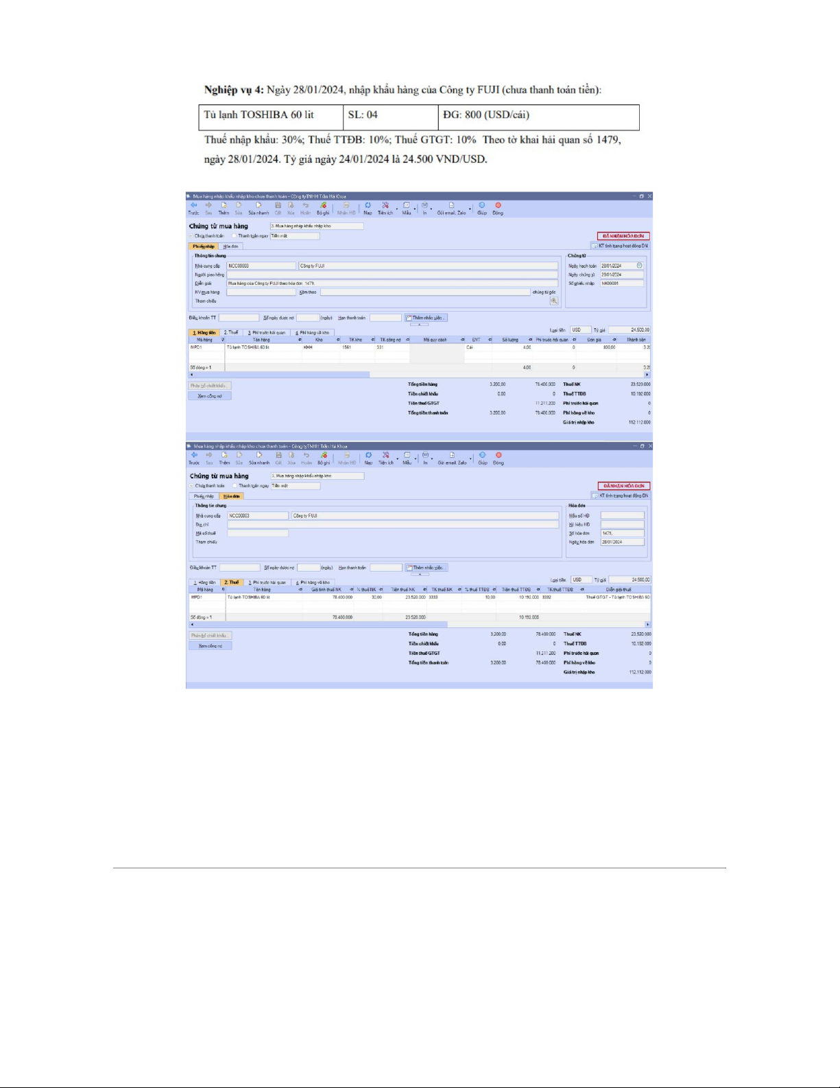 28/01/20 28/01/2024 NK00001 Mua hàng của Công ty FUJI theo hóa đơn 33312 1331 0 11.211.200 24 1479, Số dòng = 906.343.20 906.343.20 24 0 0