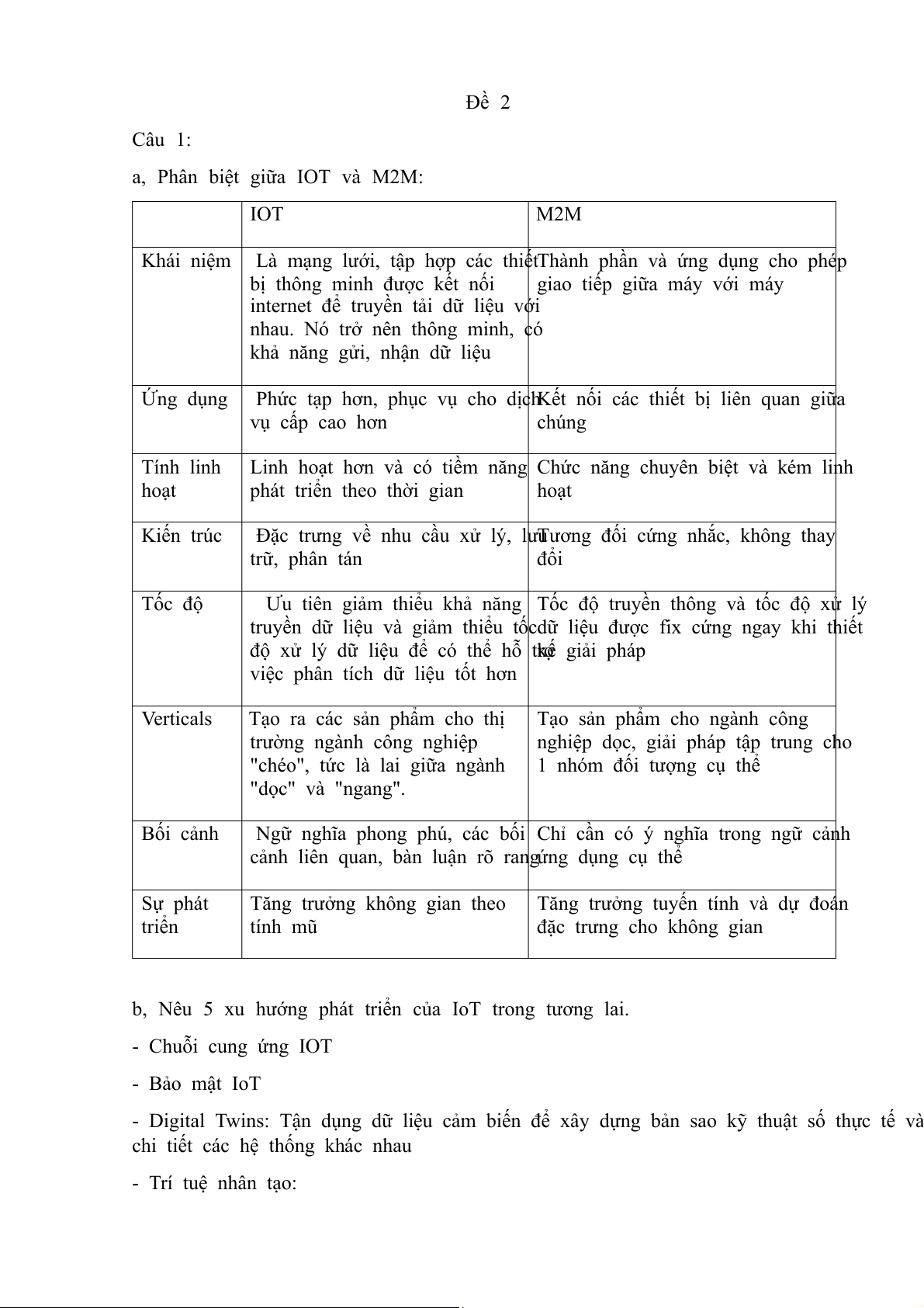 a, Phân biệt giữa IOT và M2M: IOT M2M Khái niệm