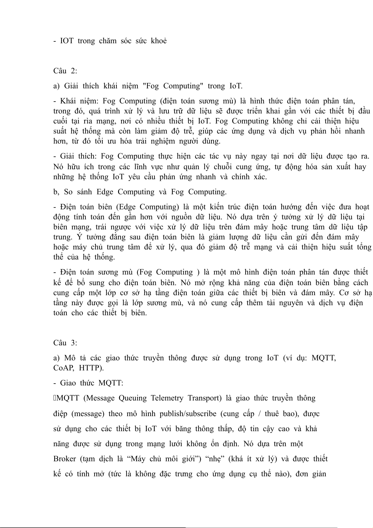 - IOT trong chăm sóc sức khoẻ Câu 2: