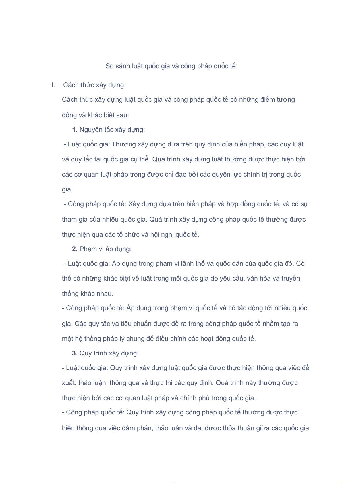 So sánh luật quốc gia và công pháp quốc tế I. Cách thức xây dựng: