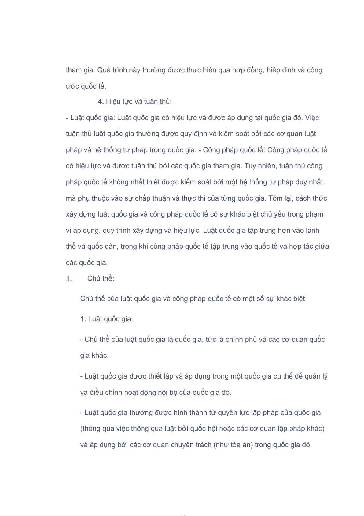 Chủ thể của luật quốc gia và công pháp quốc tế có một số sự khác biệt 1. Luật quốc gia: