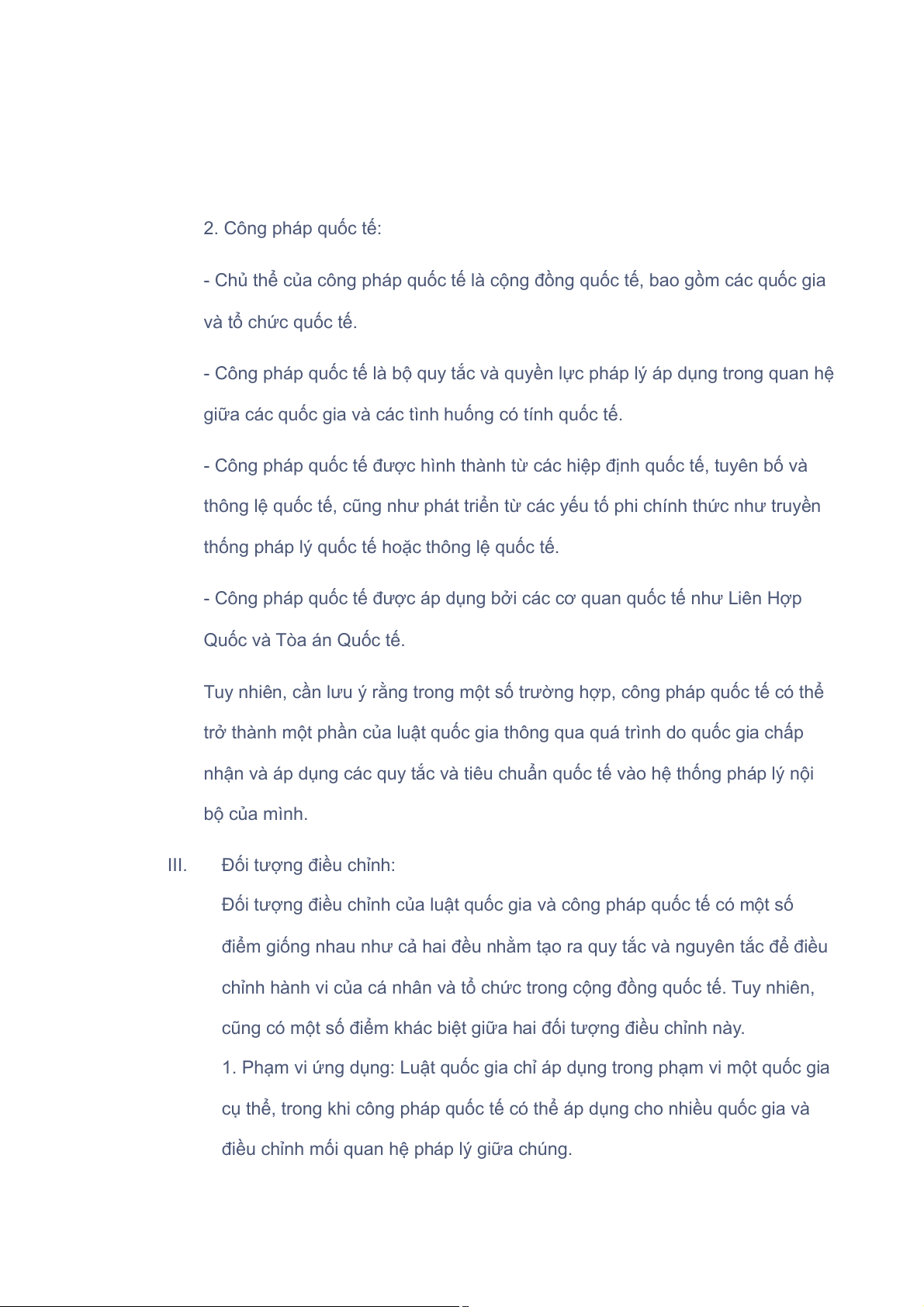 - Luật quốc gia: Áp dụng trong phạm vi lãnh thổ và quốc dân của quốc gia đó. Có