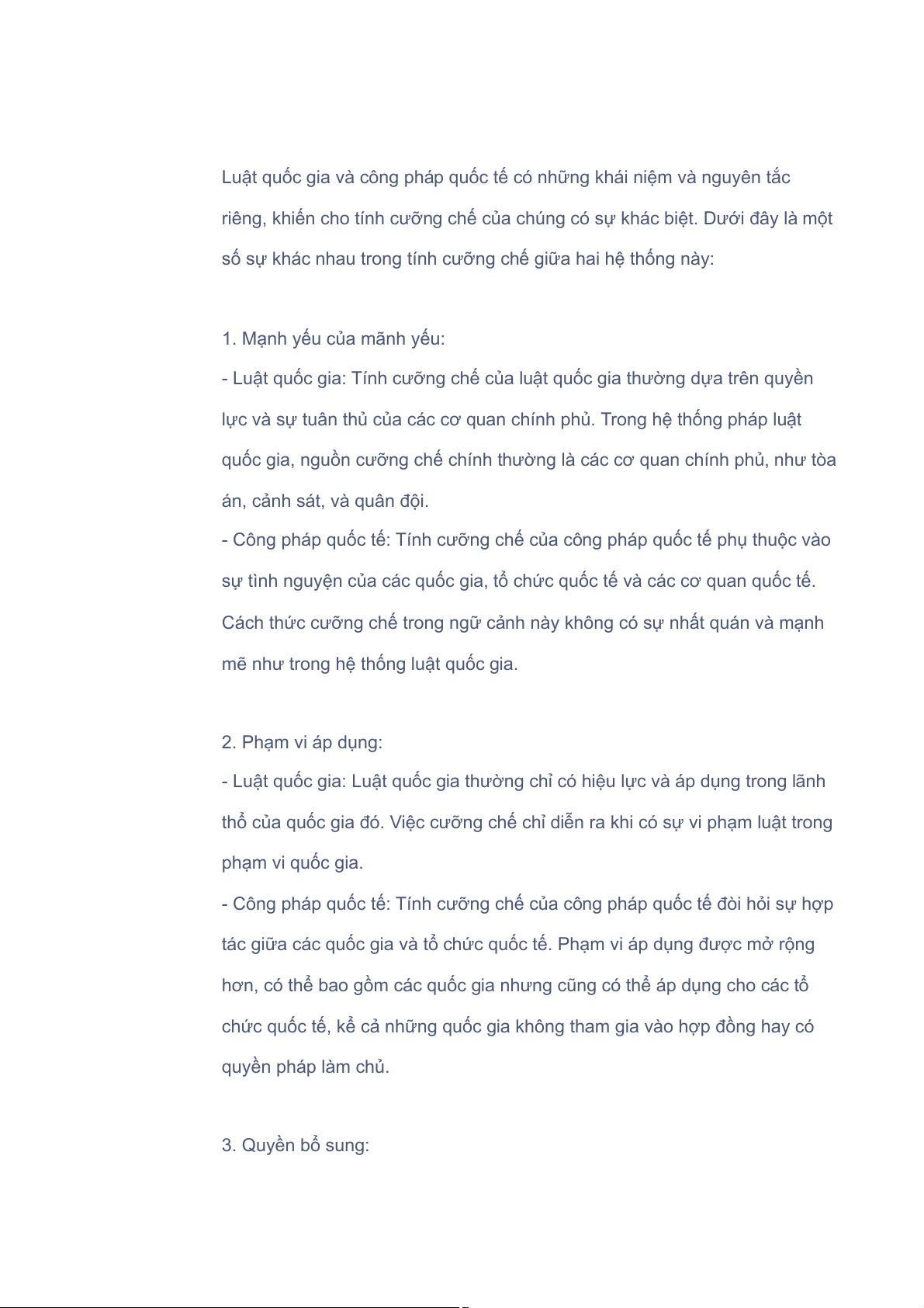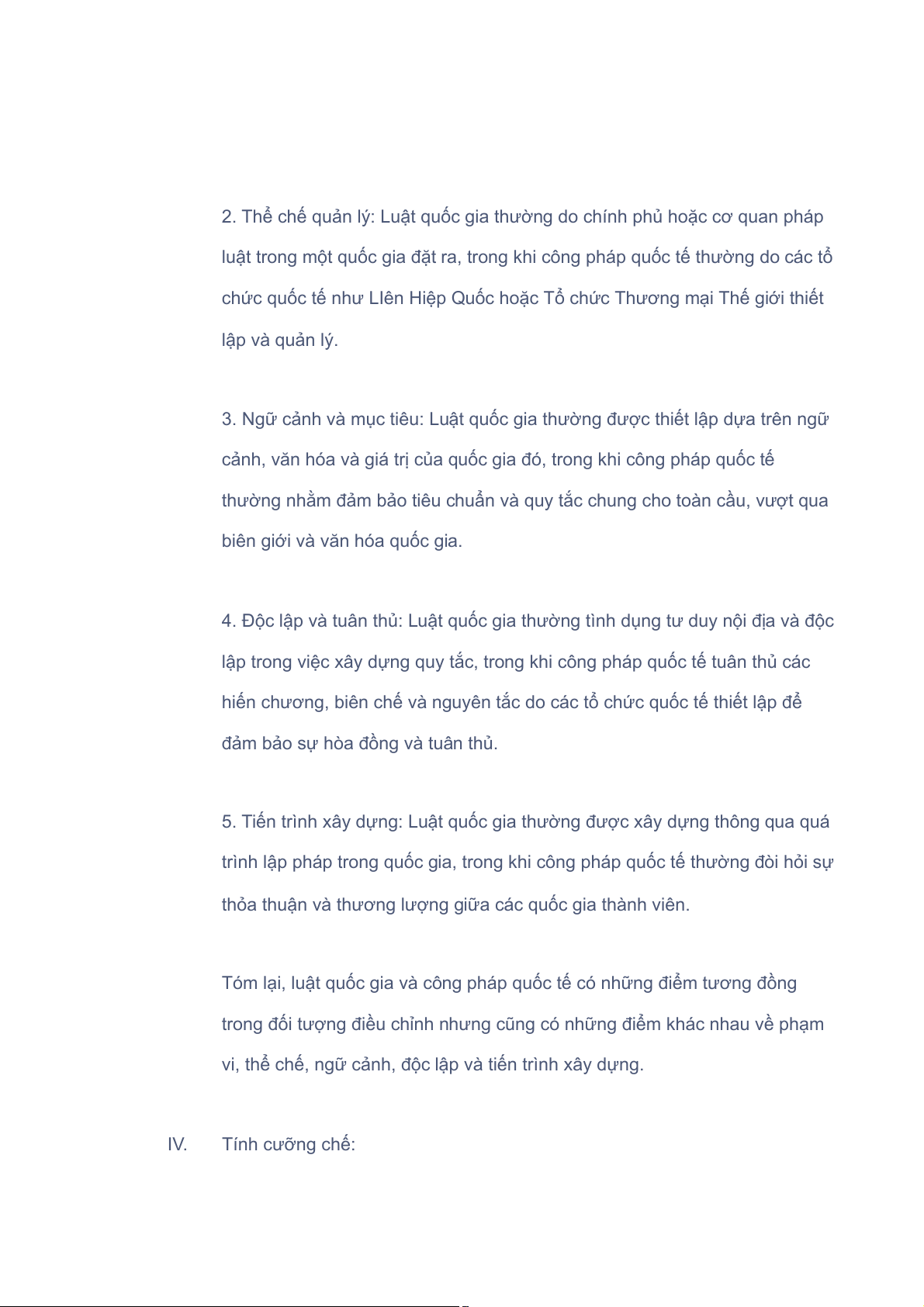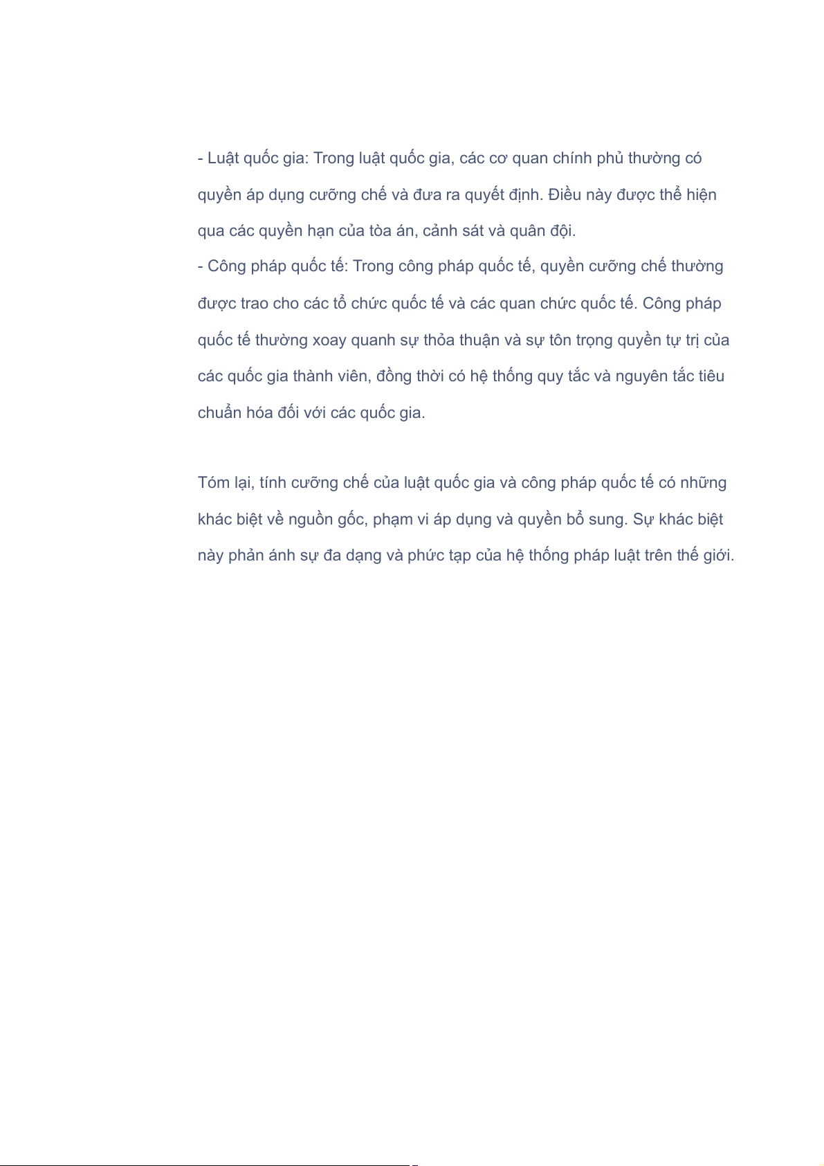 Tóm lại, tính cưỡng chế của luật quốc gia và công pháp quốc tế có những