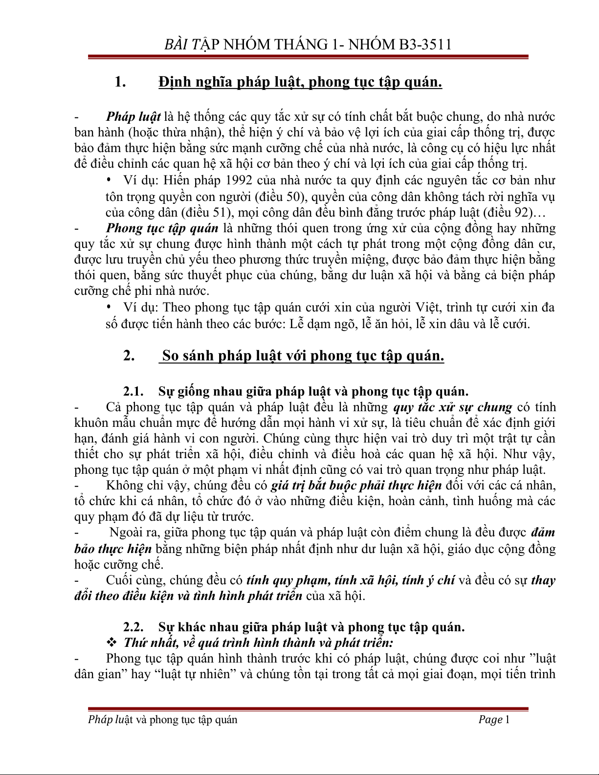 2.1. Sự giống nhau giữa pháp luật và phong tục tập quán. -