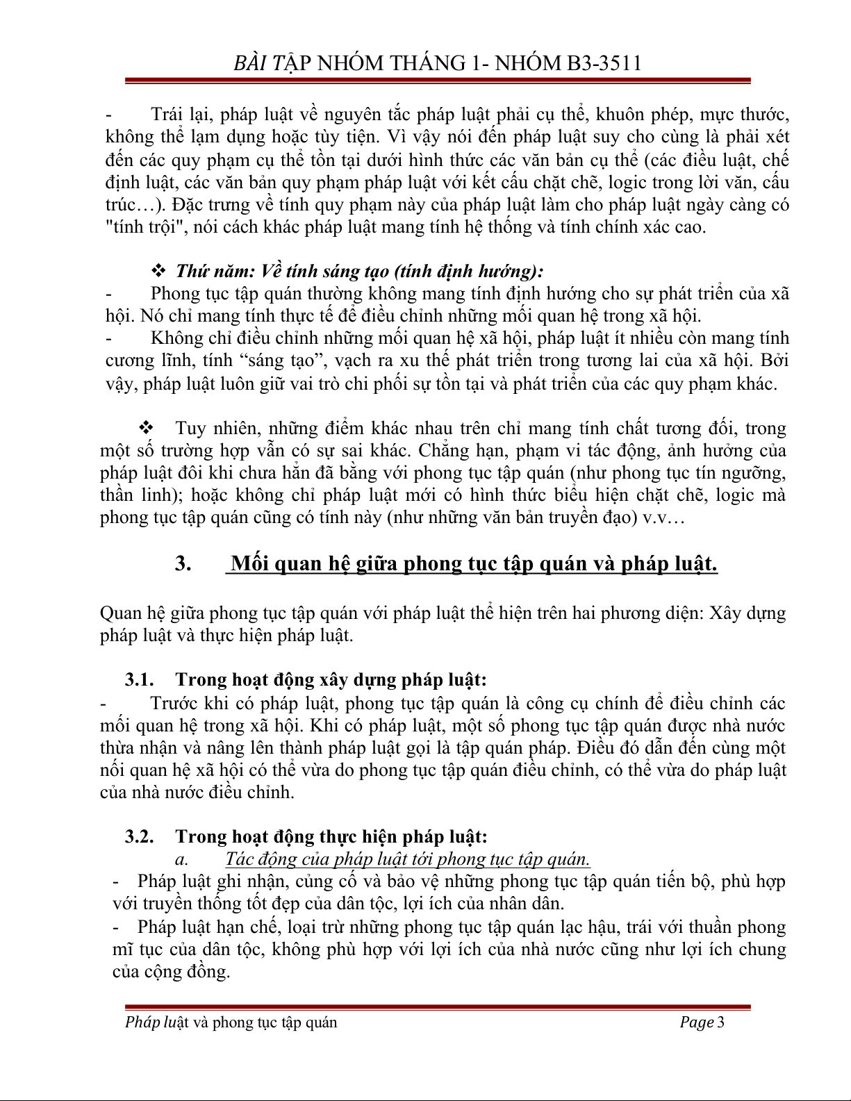 - Pháp luật ghi nhận, củng cố và bảo vệ những phong tục tập quán tiến bộ, phù hợp