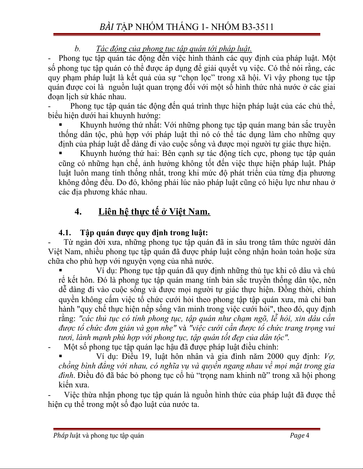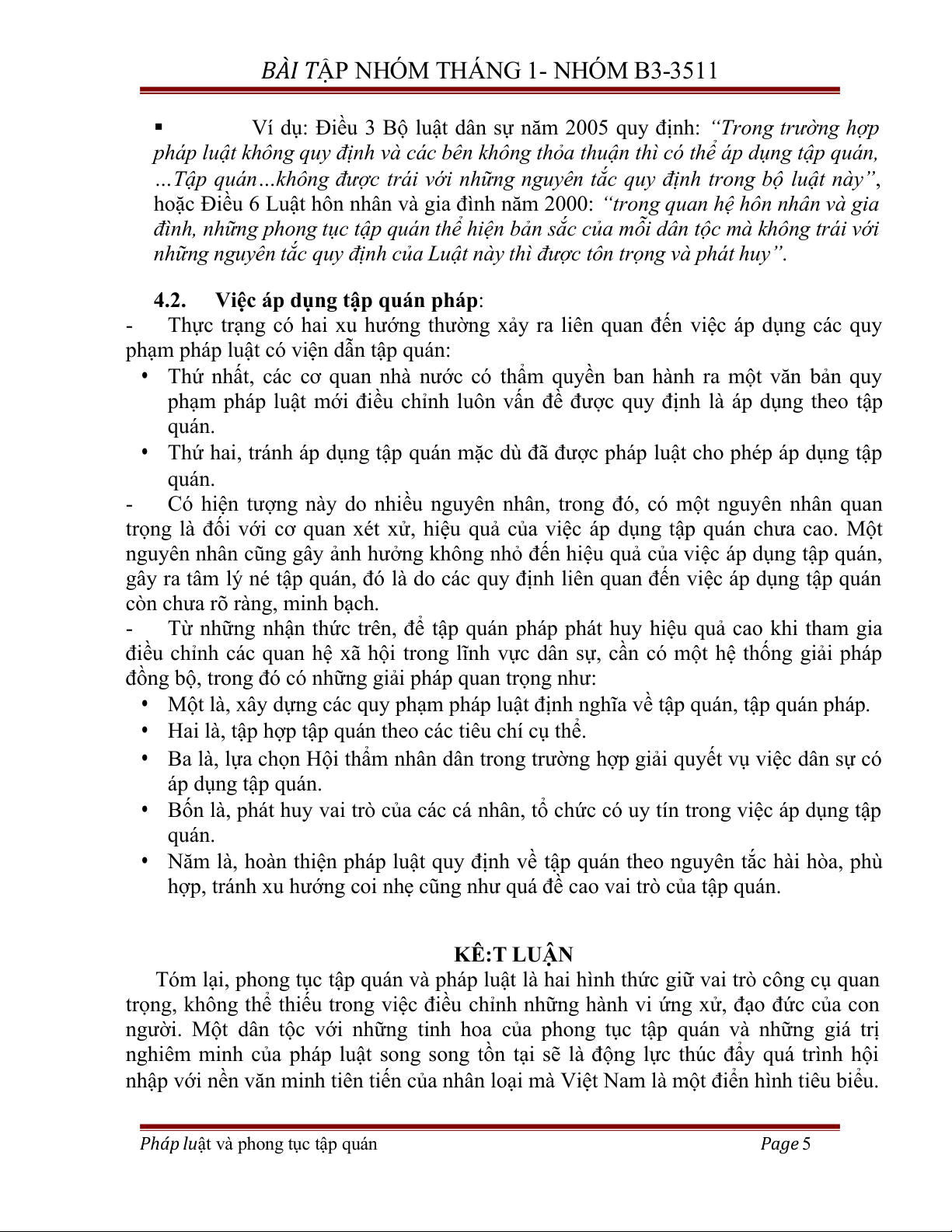 hợp, tránh xu hướng coi nhẹ cũng như quá đề cao vai trò của tập quán. KÊ:T LUÂ=N