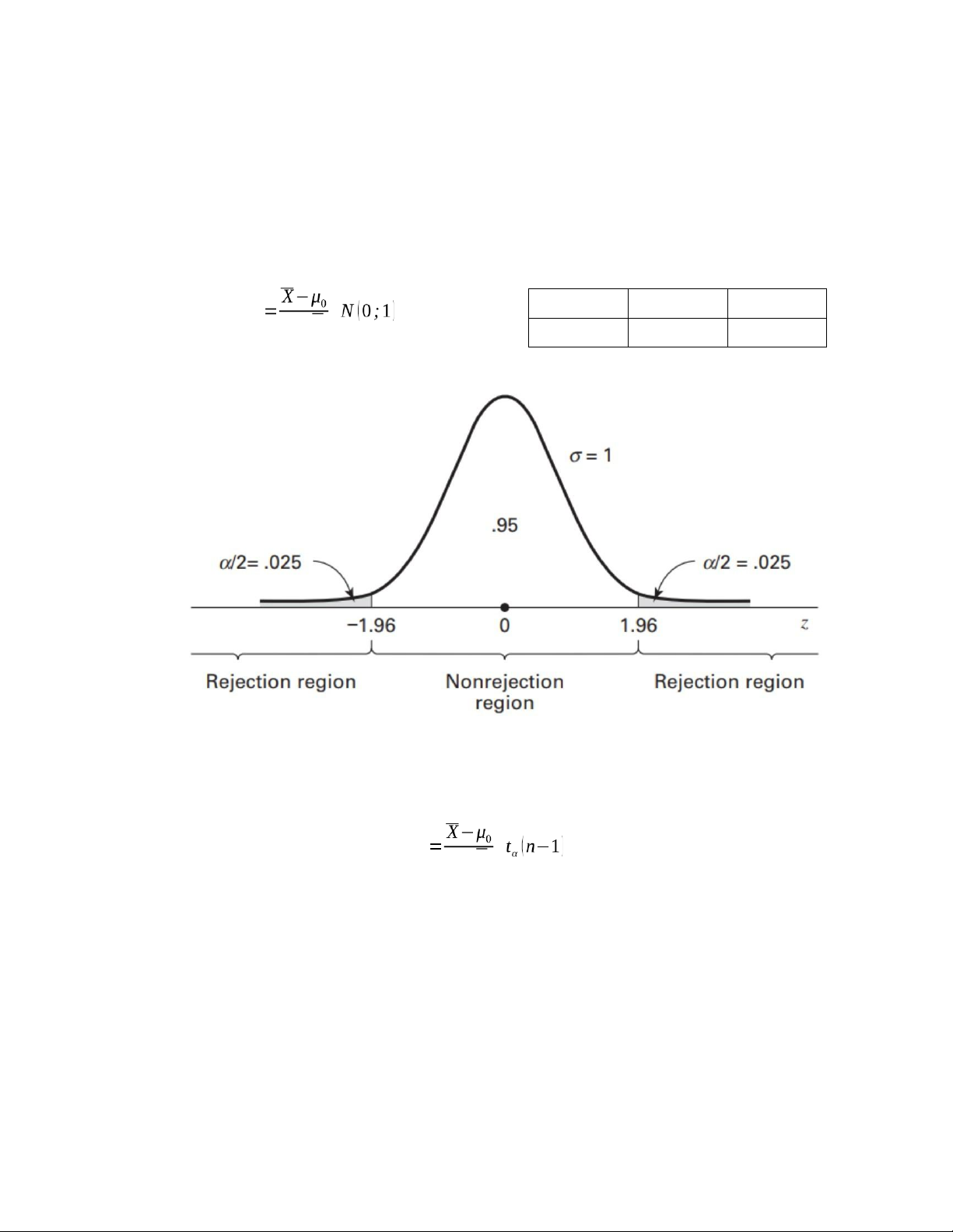 bỏ H0 b. Nếu σ 2 chưa biết và n < 30 d t Student sd/√n