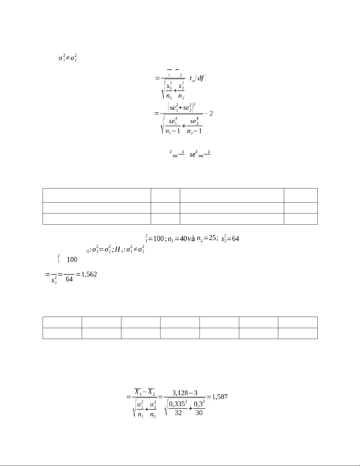 1. So sánh 2 trung bình thực nghiệm độc lập